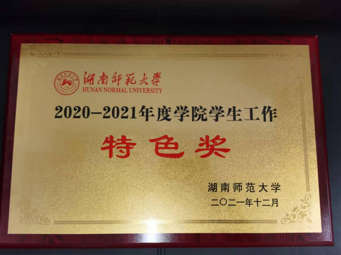 (通讯员 王洋)12月27日,湖南师范大学2021年度学生工作总结、学院特色学生工作展示暨“馨享月十佳辅导员”评选活动在中和楼129报告厅举行,我院获评2020-2021年度学院学生工作特色奖,2018级辅导员王洋获评“十佳辅导员”荣誉称号。