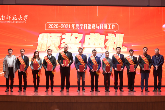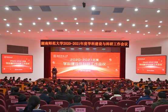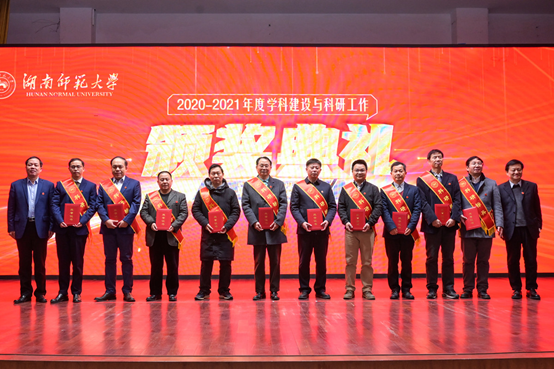 副校长谢资清宣读了学校《关于表彰2020-2021年度湖南师范大学科研标兵、青年科研标兵、科研管理先进集体和科研管理先进个人的的决定》。