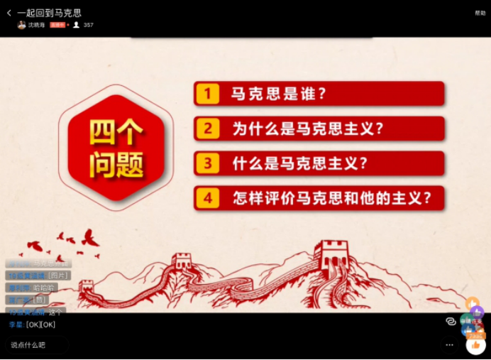 此次讲座,旨在向“建党一百周年”致敬,同学们参与积极,反响热烈,在线观看人数近400人,点赞量达3万余次,互动评论数超800条。