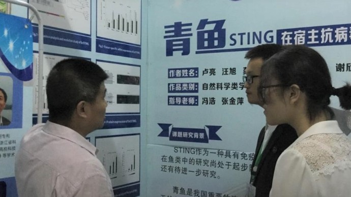 我院本科生创新团队的参赛作品,以四大家鱼之首的青鱼为实验对象,通过克隆目的基因青鱼干扰素基因刺激因子STING,运用实时荧光定量PCR检测、免疫印迹及免疫荧光、双荧光素酶报告系统分析、病毒噬斑技术等方法研究青鱼STING的结构功能及基本性质,从而揭示其在宿主抗病毒天然免疫反应中的分子机制,进而探索提高青鱼的产量和质量的方法,为青鱼疾病防治和健康养殖提供新的思路和方向,并推广至其他鱼类。此作品得到了评审小组的高度评价。