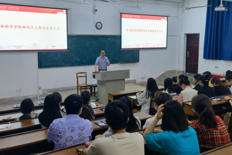 2022年4月28日下午,我院召开研究生志愿者表彰大会。胡胜标副院长、黄畅主任、章燕老师和55名志愿者参加此次大会。