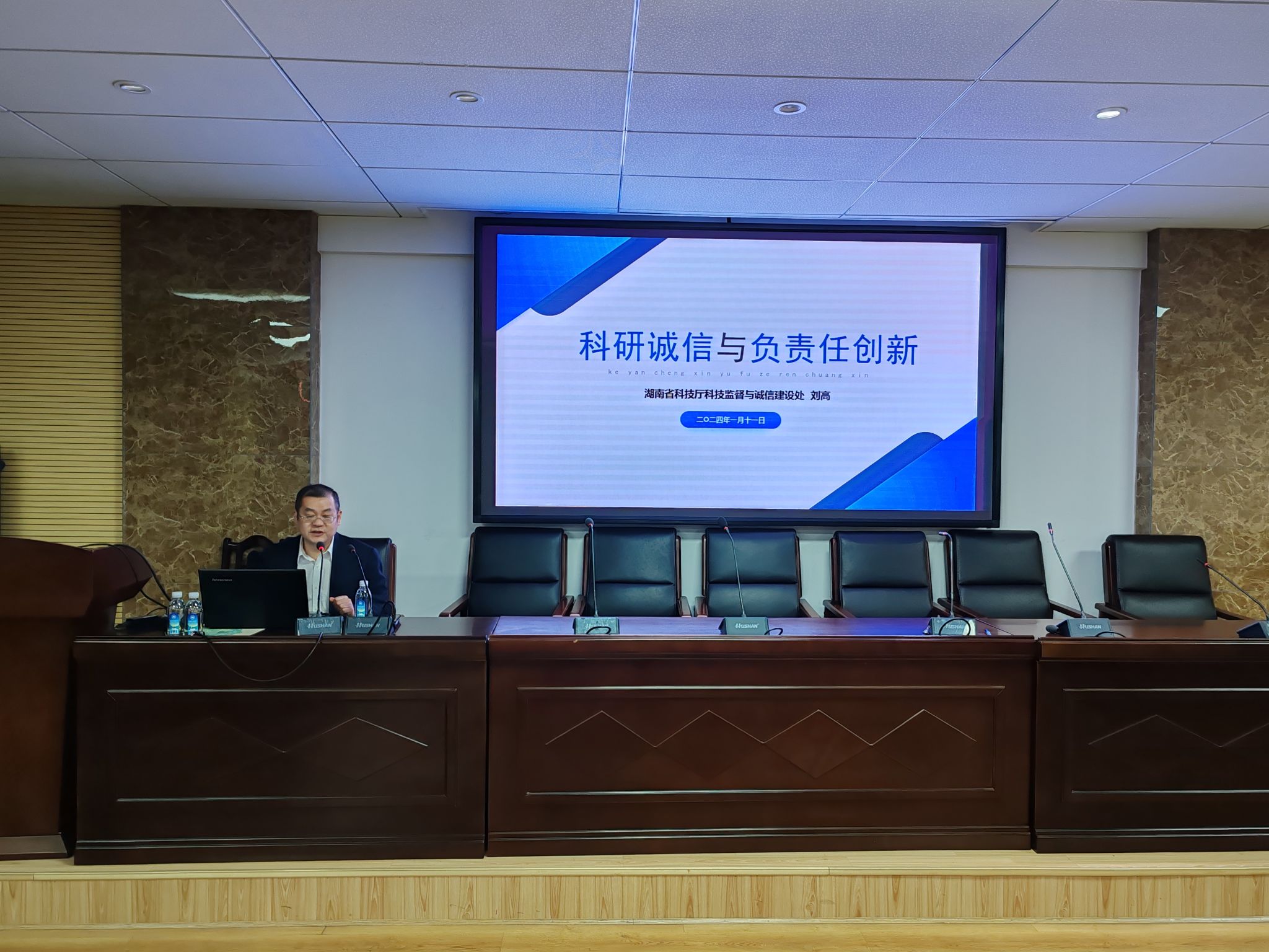 2024年1月11日下午,学院在3号楼307报告厅召开审计专项警示教育大会,会议由执行院长胡胜标主持,大会特邀湖南省科技厅科技监督与诚信建设处刘高处长参加。