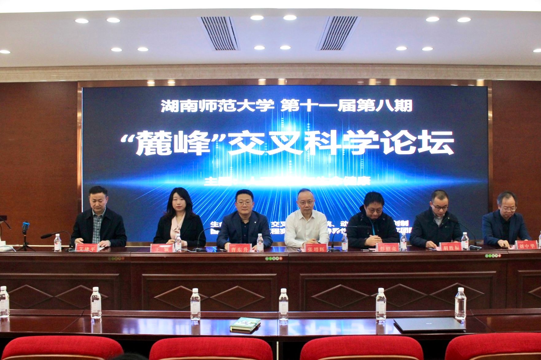 10月31日,湖南师范大学第十一届第八期“麓峰”交叉科学论坛在中和楼智信讲堂举办。本期论坛的主题为:人工智能与生命健康。深圳理工大学合成生物学院讲席教授张增辉、国家超算长沙中心教授彭绍亮、中南大学湘雅药学院教授曹东升,我校天天精品视频免费观看特聘教授王颖、交叉科学研究院副院长艾建平出席论坛。论坛由天天精品视频免费观看院长胡胜标教授和动物多肽药物创制国家地方联合工程实验室主任刘中华教授主持。