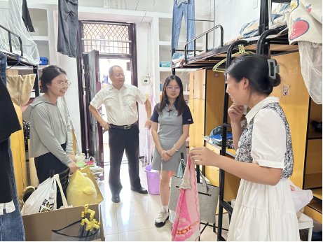 离别时刻,师生情谊尽显。6月17日下午,天天精品视频免费观看党委副书记彭赛丰,2025届毕业生辅导员刘迎彬走进毕业生寝室,与即将踏上人生新征程的学子们暖心交流。每到一间宿舍,老师们都与毕业生们亲切交谈,详细询问他们的毕业去向、未来发展规划、离校手续办理情况以及目前存在的困难和需求。同时,老师们帮助同学们搬运行李,祝愿毕业生们一路顺风。