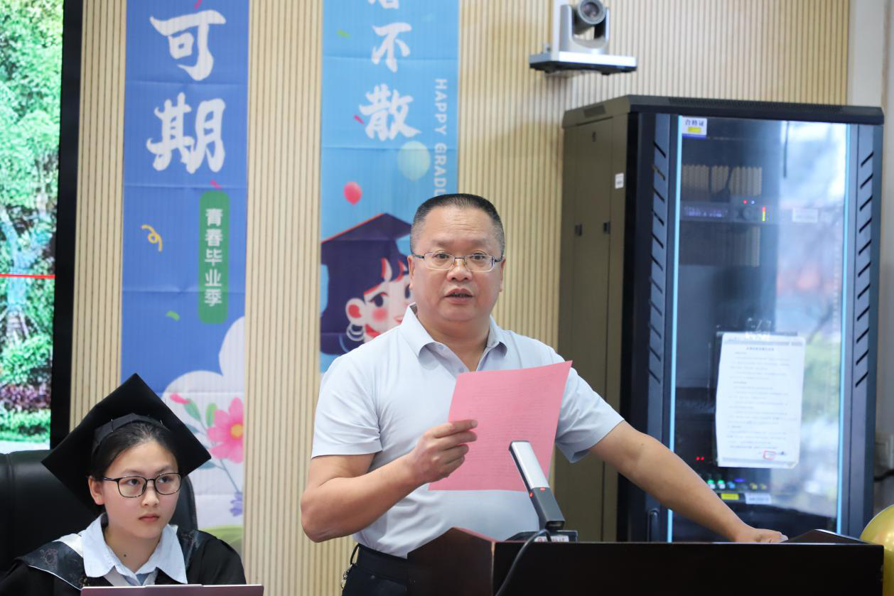 学院党委书记谢罗庚在致辞中介绍了2025届毕业生的就业工作。截至目前,毕业生去向落实率稳步提升,众多学子投身科研、教育、研发、基层等领域。他寄语25届毕业生,要牢记习近平总书记的嘱托,把个人的理想追求融入党和国家事业之中 为党为祖国为人民多作贡献。他勉励毕业生保持探索勇气与坚定信念,将专业所长转化为服务社会的动能,在新时代的伟大征程中,用奋斗书写青春华章,以实干践行使命担当,在各自岗位上发光发热,为实现中华民族伟大复兴的中国梦添砖加瓦。