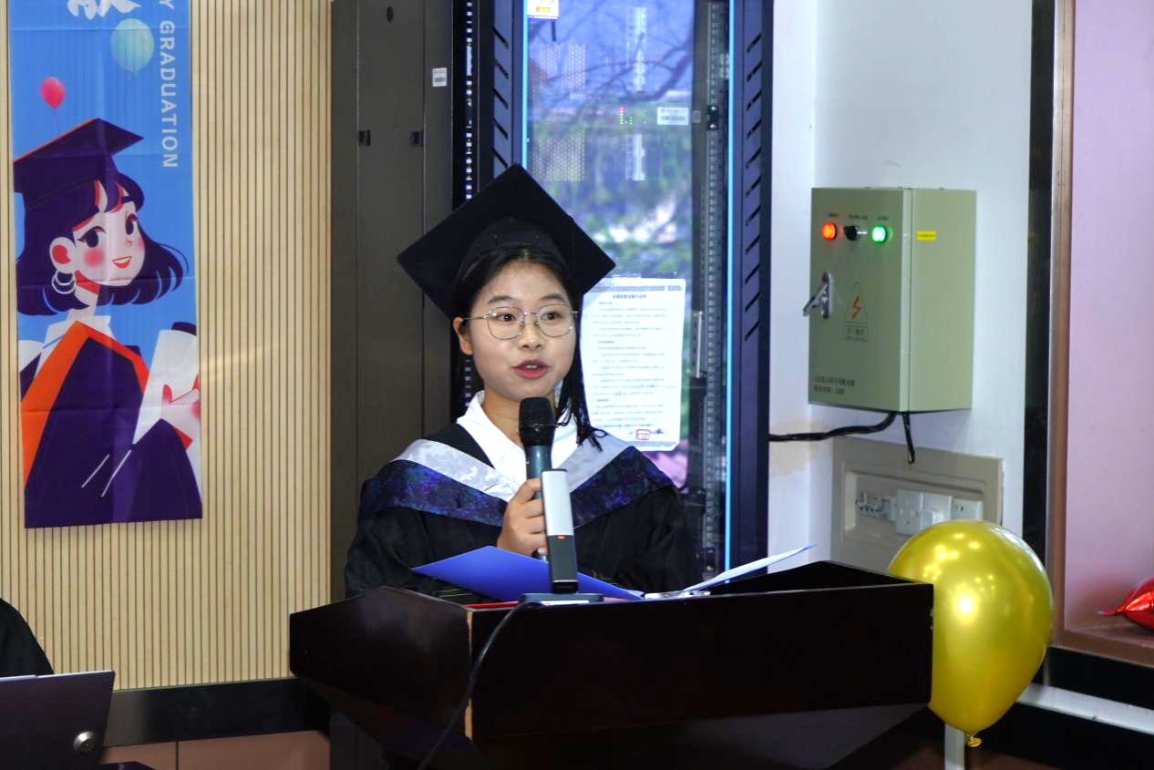2023 级本科生代表谢志艳在发言中回顾了学长学姐们在学习、生活上给予的帮助,包括分享学习经验、指导学生工作等,表达了对毕业生的敬意与祝福。2025届毕业生代表王春艳以真挚的情感回顾了自己在学院受到的老师帮助和同学关怀,特别感谢了学院在学业指导、生涯规划等方面给予的支持,并表达了毕业生们未来积极向上、回报祖国的决心。