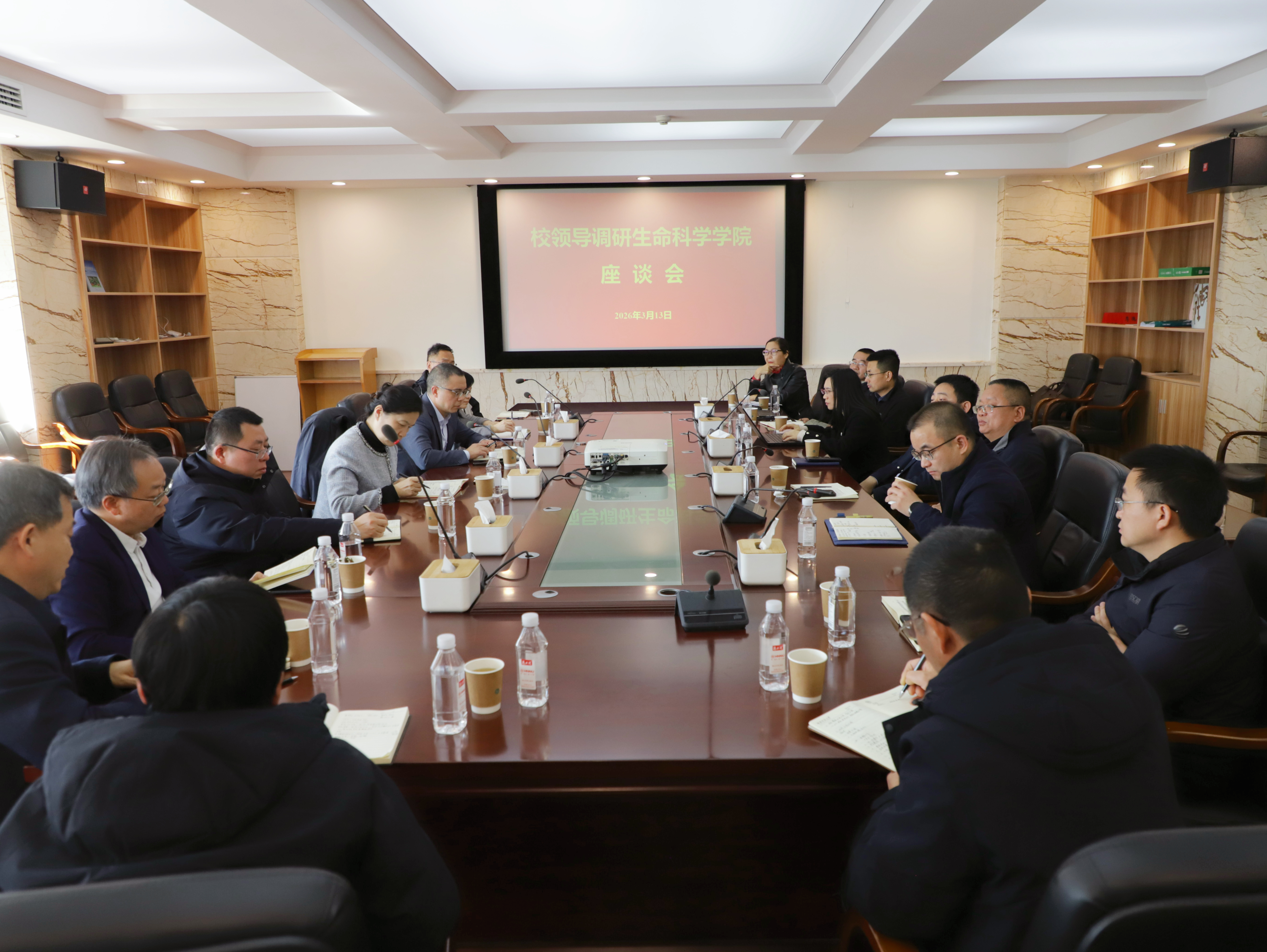 (通讯员 王佳佳)3月13日上午,学校党委副书记段巍,副校长刘红荣一行到天天精品视频免费观看调研并召开座谈会,天天精品视频免费观看党委书记谢罗庚主持座谈会。