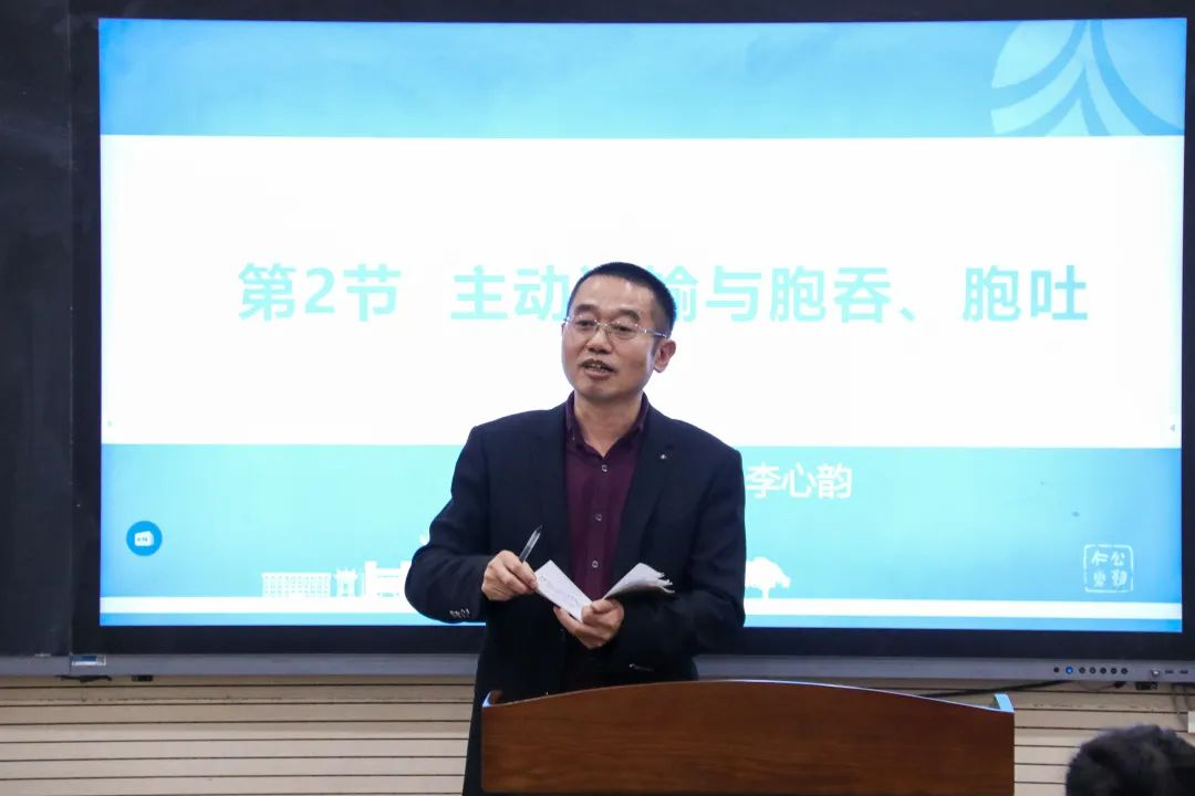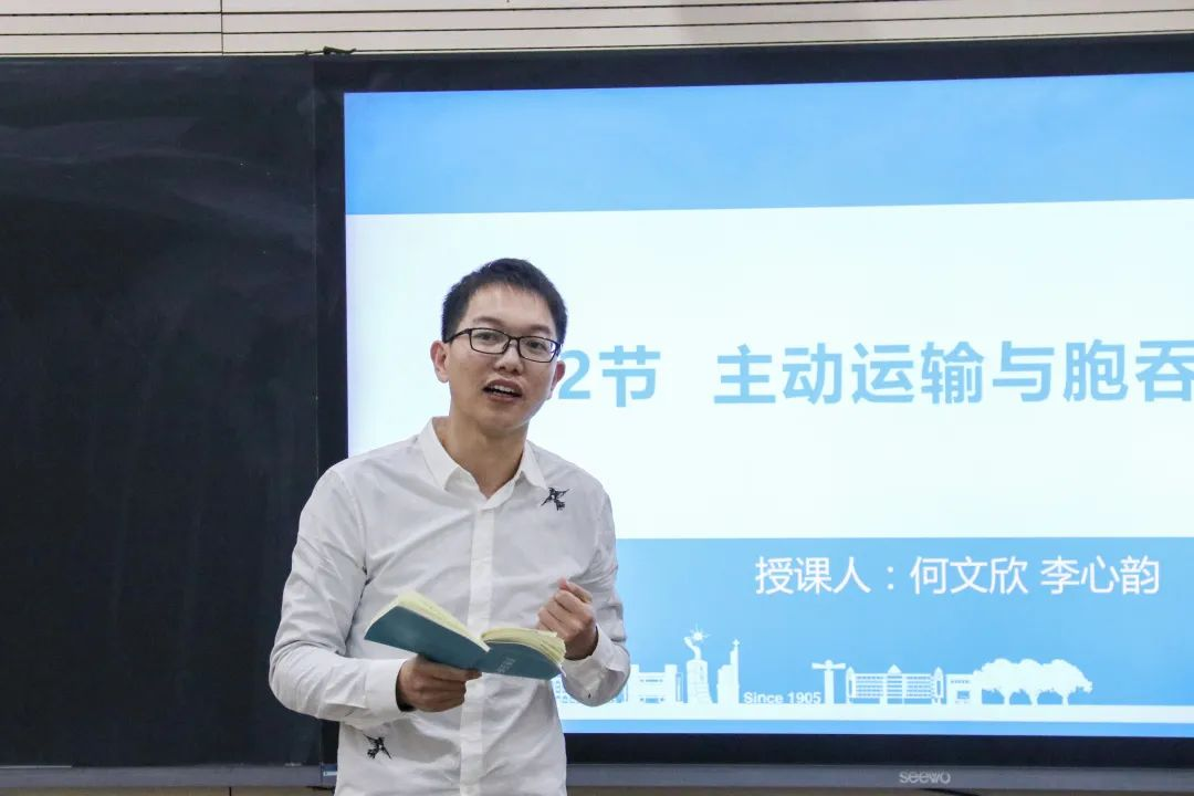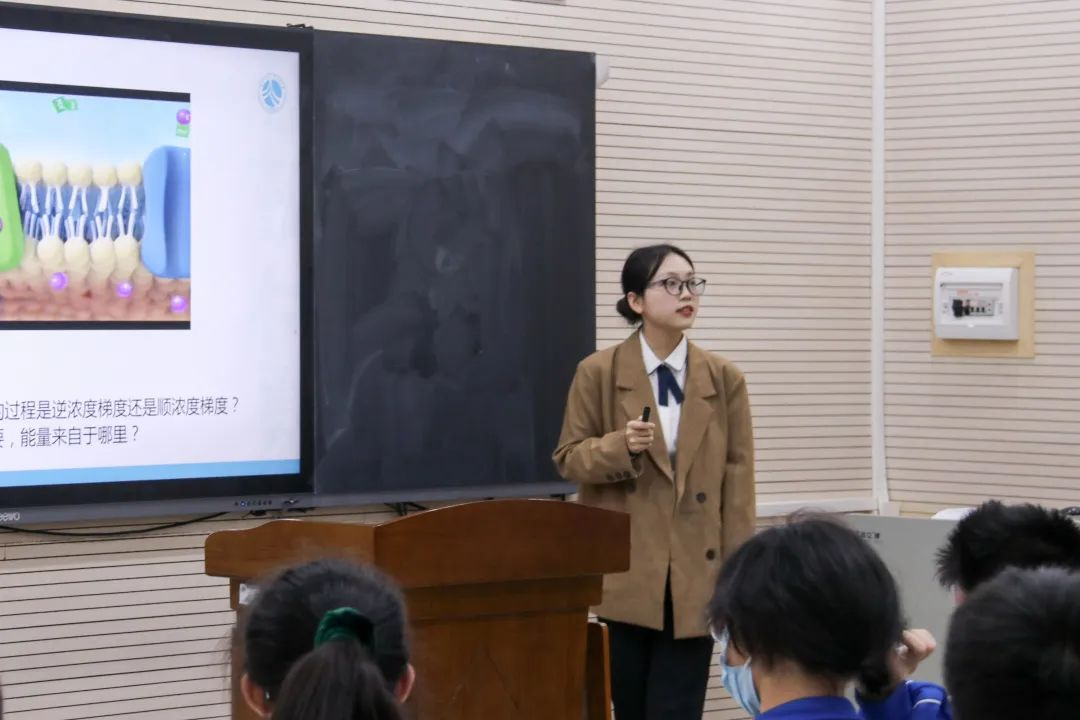 两位实习老师诠释了“备课不离单元整体教学、上课不离情境设置”,使学生做到自主学习、合作学习、探究学习和体验学习。何文欣通过引入“快乐生活的小肠细胞为何不再快乐”的问题,设趣激疑,以小肠上皮细胞为研究对象,探究物质跨膜运输方式,绘声绘色、深入浅出的讲述深得学生的喜爱。