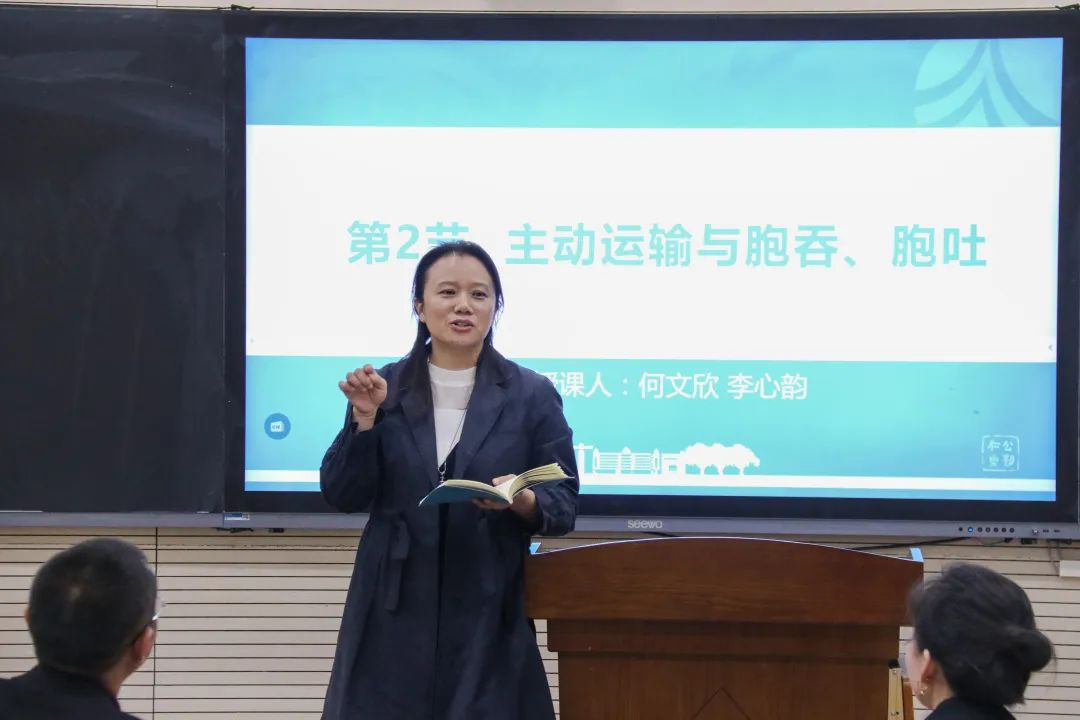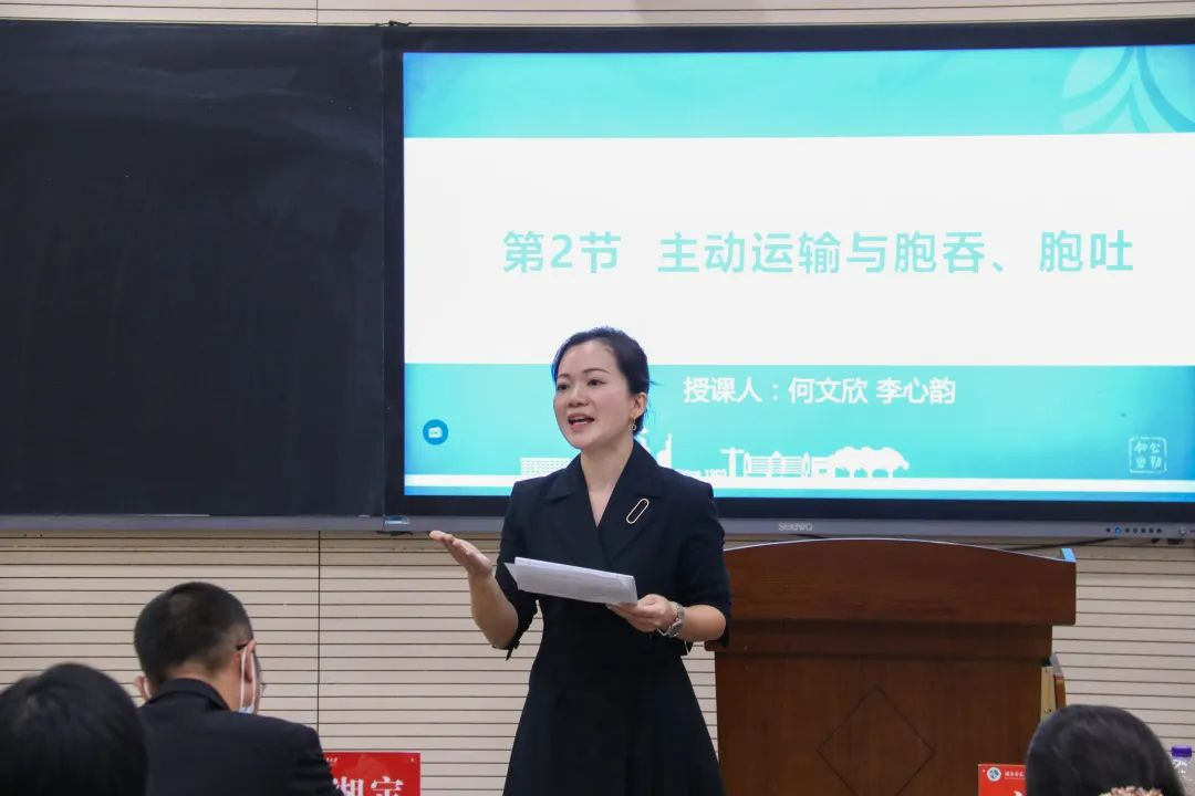 11月3日,实习老师何文欣、李心韵主讲的汇报课《主动运输与胞吞、胞吐》于师大附中惟一楼一楼东第一多功能厅顺利开展。为深入了解师范生实习情况,湖南师范大学组织专项工作组赴师大附中关心慰问实习老师,并联合师大附中教研组对实习队各项工作进行了检查。湖南师大生科院党委书记谢罗庚、教学副院长陈湘定、生科院专任教师戴国、外国语学院副院长刘白、历史文化学院副院长徐良利、美术学院党委副书记莫南、教师教育学院教管科科长谢燕、候会丽老师、师大附中科技创新中心副主任黄俊、教学指导委员会主任汪训贤、学术委员会委员李尚斌、生物教研组组长杨群英、副组长朱昌明莅临现场指导,附中生物组教师及全体实习老师参与。