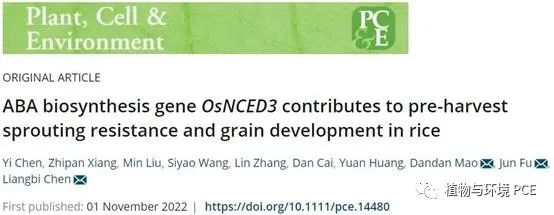 近日,湖南师范大学生命科学院陈良碧、毛丹丹研究组和湖南农平高科亚华种业科学研究院傅军研究组合作在Plant, Cell & Environment 上发表了题为“ABA biosynthesis gene OsNCED3 contributes to pre-harvest sprouting resistance and grain development in rice”的研究论文,揭示了水稻种子休眠调控关键基因OsNCED3的遗传机制。