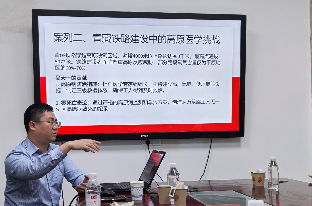 在主题分享环节,谢华平教授围绕生理学课程思政建设的实践与认识,从人体及动物生理学教学团队建设、培养批判性思维、生理学课程思政问卷调查、教学案例、科学精神培养以及AI+课程思政等多个维度进行分享。首先,他通过开设本科生通识课程《从纳吐夫人到纳米技术:生物技术发展史》来讲解如何有效培养学生的批判性思维。接着,他指出生理学教学团队依托国家级一流课程《生理学》,将青藏铁路“零死亡”高原医学奇迹、听诊器200余年迭代史等鲜活案例写进教案,把氧离曲线、高原缺氧机制等专业知识与家国情怀、科学精神整合设计为课程思政案例集;运用AI技术创新思政课程教学新模式,创建数字思政课教师形象深化数据驱动的精准教学,例如通过学习行为预测提前识别知识薄弱点,为学生定制学习资源与实践活动。