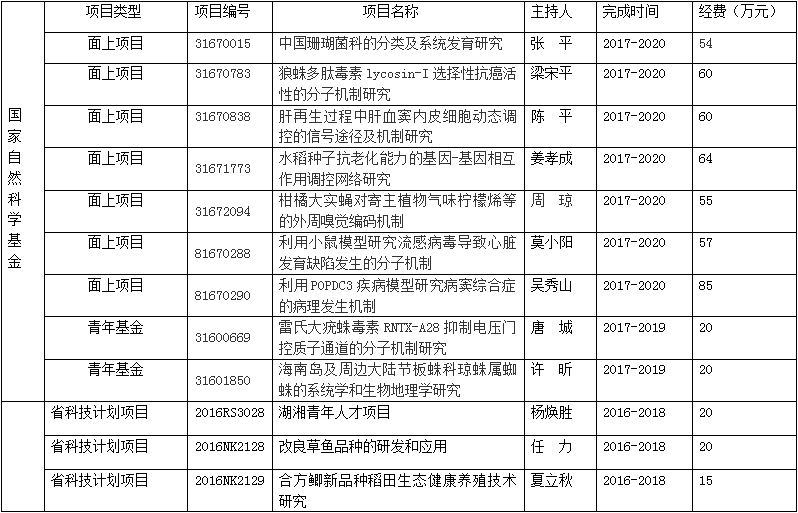 2017年立项科研项目