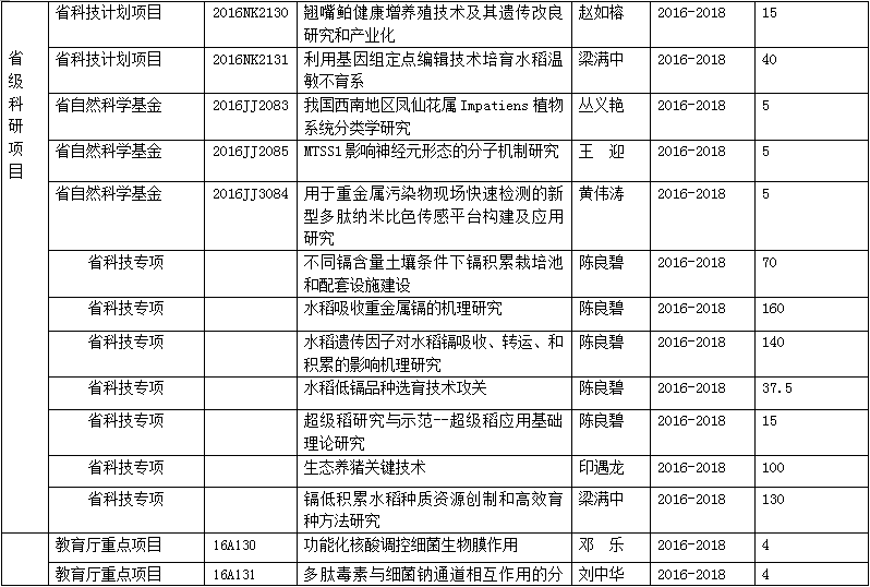 2016年立项科研项目