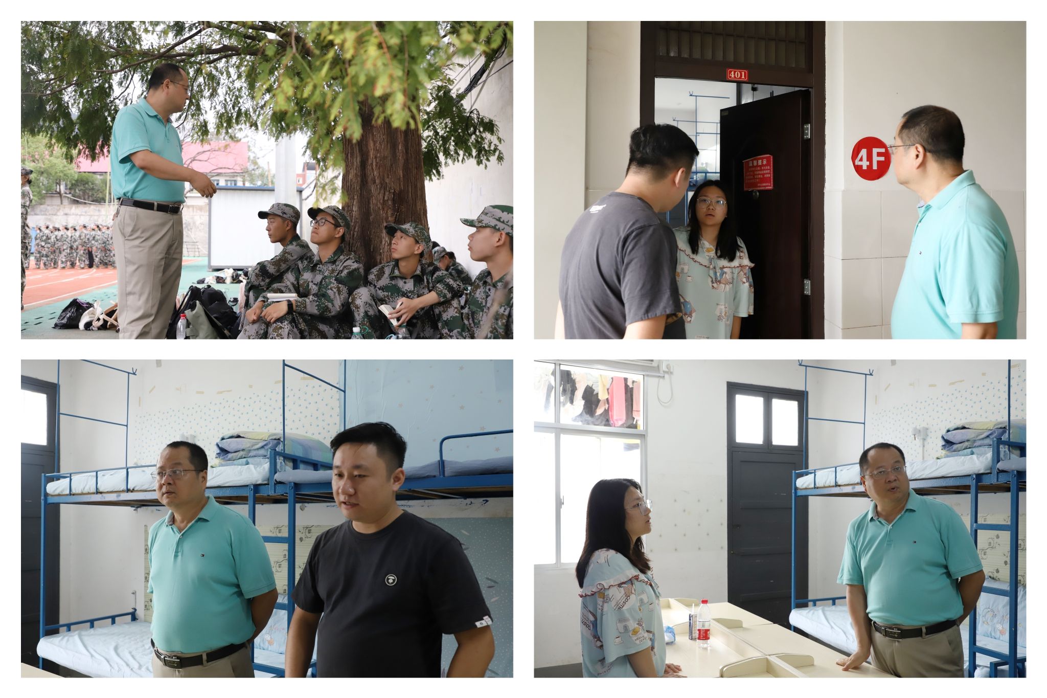 (通讯员 陈怡辛 毛烨宇)9月20日上午,天天精品视频免费观看党委副书记彭赛丰,学工办主任兼2022级辅导员周冲一同前往南院军训现场,探望军训教官、慰问新生军训,并对新生寝室内务进行视察指导。