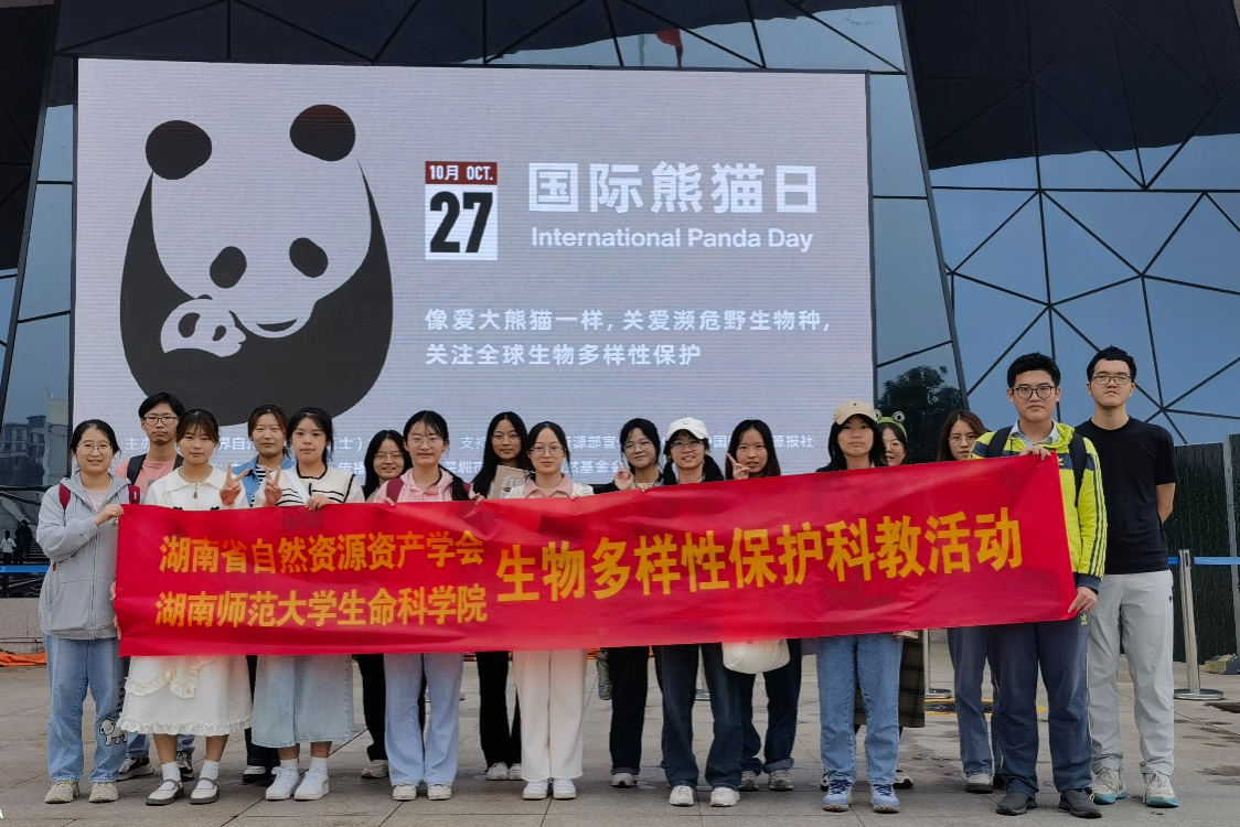 为提高公众保护野生动植物意识,扩展生物多样性保护的专业视野,培养学生关爱自然,崇尚科学的精神,10月27日,湖南师范大学天天精品视频免费观看与湖南省自然资源资产学会共同组织生科院学生开展生物多样性保护系列科教活动。活动包括参加“寻古探今 共建生态文明”国际熊猫日学术主题论坛以及参观“稻花香里说丰年”专题展览和湖南省地质博物馆。
