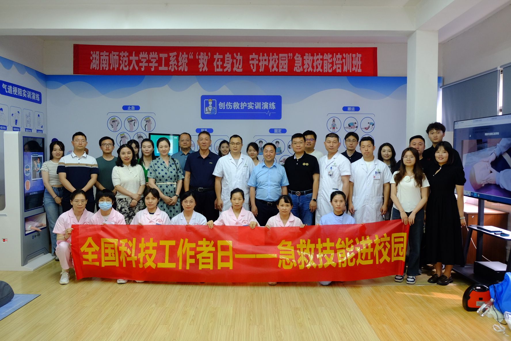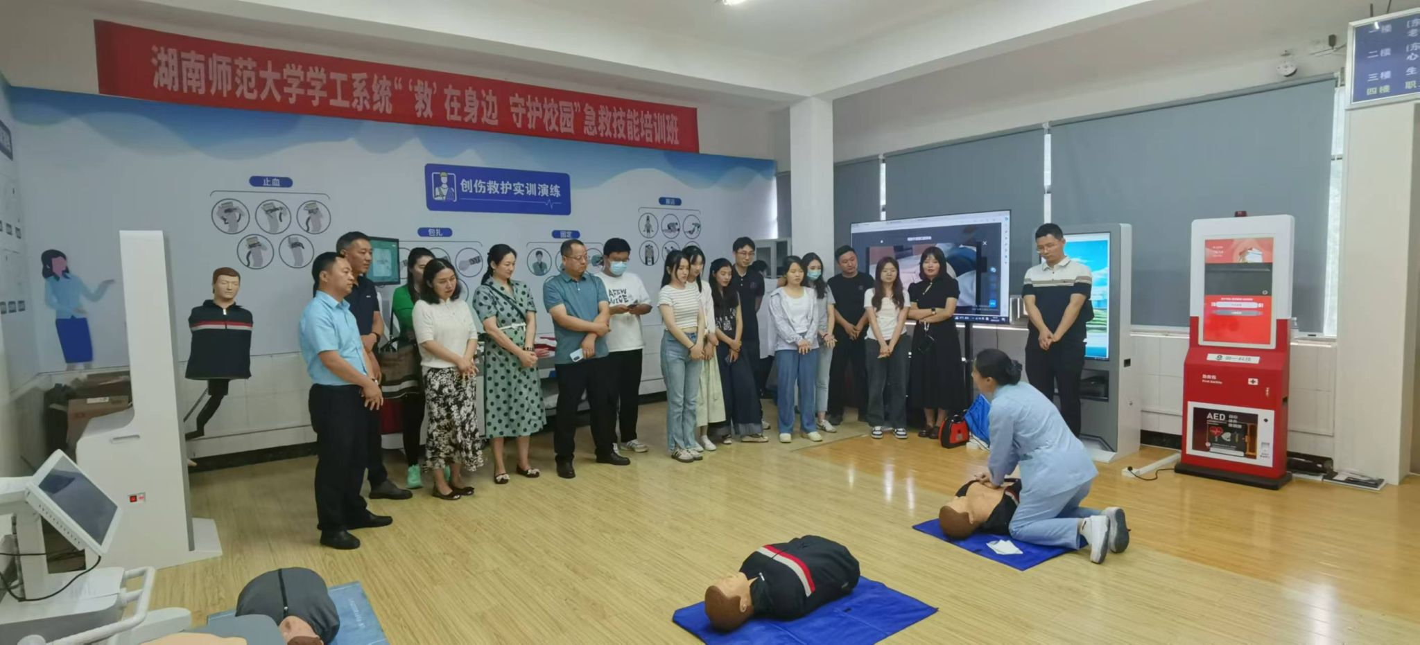 (通讯员 刘迎彬 邓芝涵)5月27日下午,天天精品视频免费观看党委副书记彭赛丰带领学工办老师一行,赴校医院四楼急救教育实训室,参与“‘救’在身边,守护校园”急救技能培训班。此次培训旨在进一步提高学工系统老师的应急救护能力,为构建安全、健康的校园环境贡献力量。