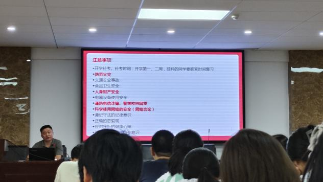 大会分为四个部分:前两年的总结、目标生涯规划、大三开学目标及本学期工作安排、安全提醒。周冲首先对大二学年的各科考试情况、各类资格证书获取情况以及课堂纪律等进行了全面总结,分析了同学们存在的问题,并提出了相应的改正要求。随后,周冲结合2024届毕业生的毕业去向,分析了同学们在未来生涯中可能面临的方向选择与挑战,以及当前的就业形势,并提醒学生们尽早、合理地规划接下来的学习生活。他特别强调了考研的优势,如“深化专业知识,拓宽视野事业,提升个人素质与竞争力”,为学生们提供了宝贵的启发。同时,周冲强调学风和班风建设的重要性,倡导勤学善思,激发创新潜能,营造浓厚的学术氛围,共筑严谨求实、锐意进取的学习风尚。最后,周冲对校园安全进行重点强调,提醒同学们加强安全防范意识,包括用电用火安全、个人财务安全、人身安全、交通安全、防范网络诈骗等,并特别关注了同学们的心理安全和寝室生活卫生。刘慧琪对周冲的讲话进行总结提炼,各班开展班干部的换届选举大会。