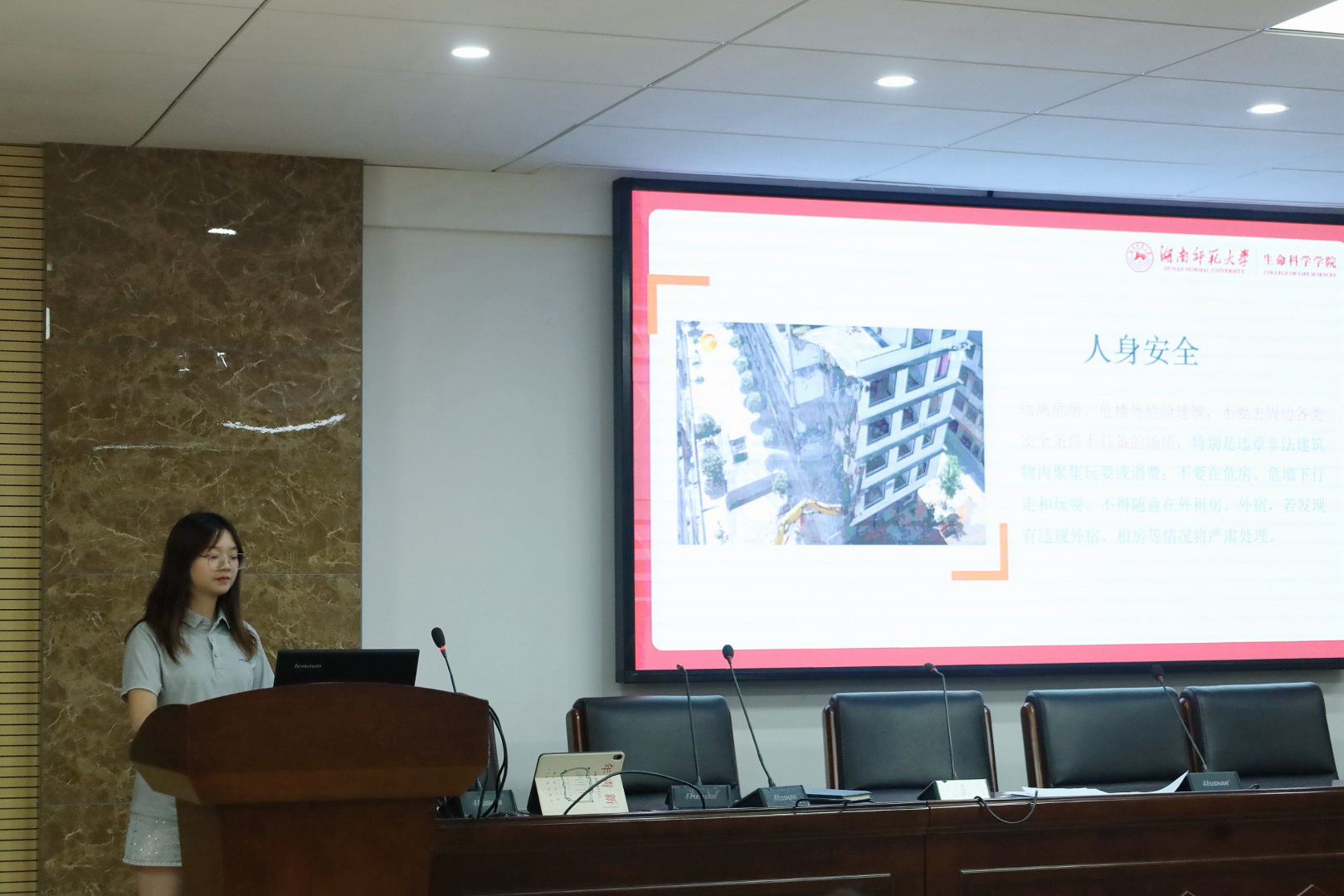 (通讯员 龙婵 陈嘉妮)9月14日下午,为做好毕业生思想教育和安全教育,天天精品视频免费观看于生科院3号楼B栋307学术报告厅召开2021级本科生年级大会。此次会议以“珍惜毕业季,奋发向未来”为主题,会议由2021级辅导员刘迎彬主讲。