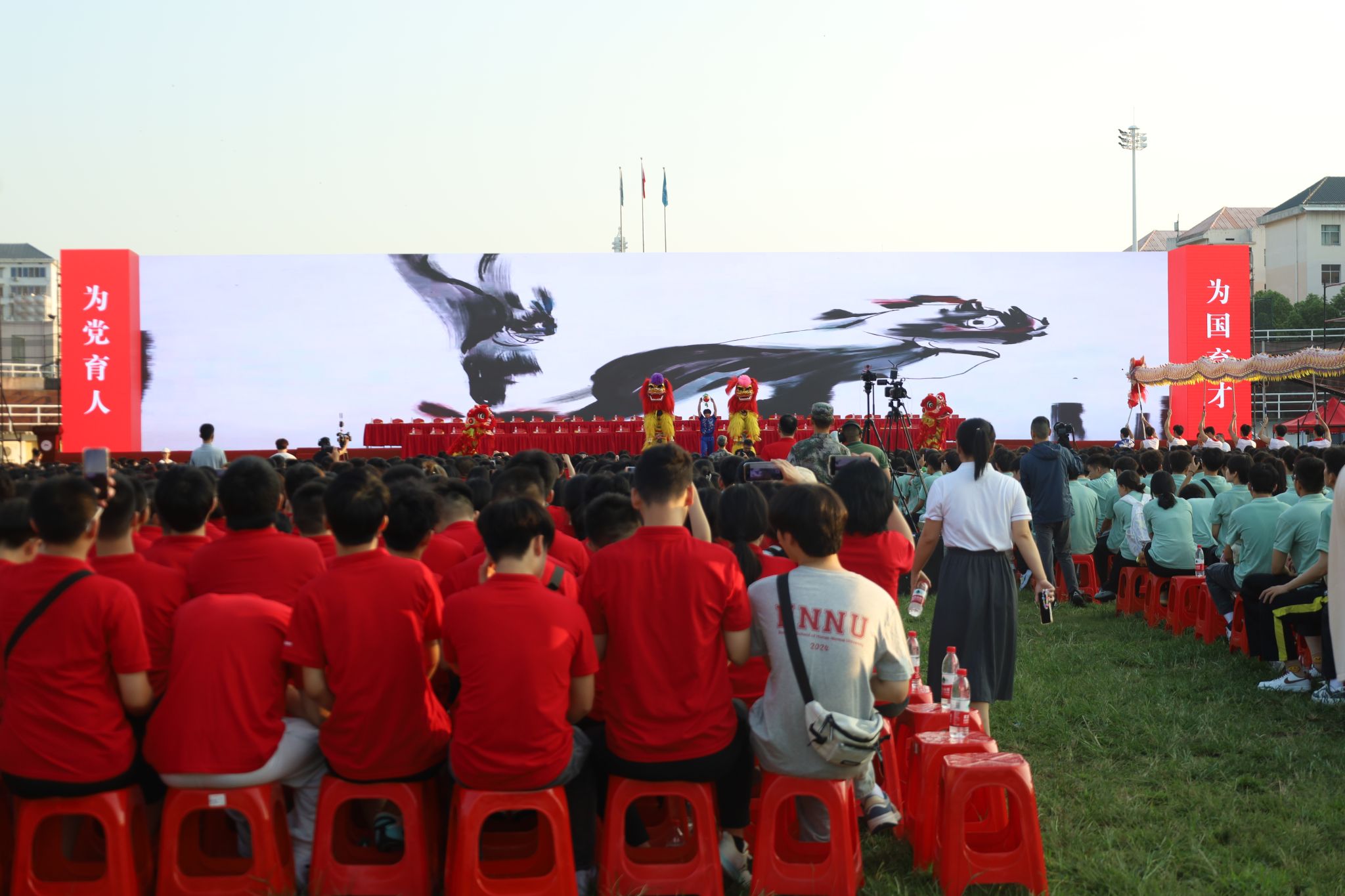 生科院团委书记兼2024级辅导员罗静伟、军训教官与班导师提前安排好集合位置,带领新生有序前往典礼现场并及时入座。典礼在体育学院、校健美操队、校武术队以及音乐学院带来的《祥龙瑞狮迎骄子》、《青春闪耀》、《武韵风华迎新程》、歌曲串烧等暖场节目中拉开序幕,充分调动了新生们的情绪,为典礼营造了热烈的氛围。