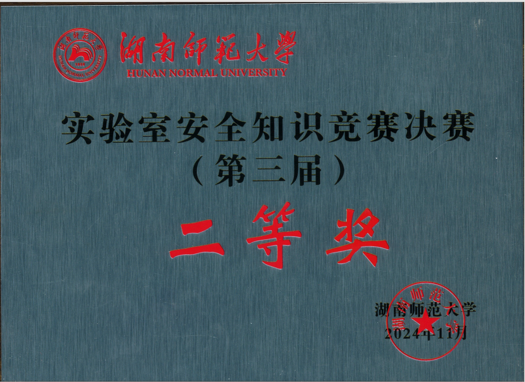 11月3日,湖南师范大学在国际学术报告厅举行2024年实验室安全知识竞赛决赛。学校副校长潘安练出席活动。我院在此次实验室安全知识竞赛中获得“二等奖”和"优秀组织奖",陈湘定教授获"优秀指导教师"。