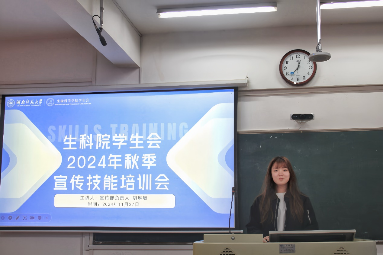 (通讯员 杨静茹 曹晟)11月27日中午,天天精品视频免费观看学生会于生科院三号楼B107教室举办2024年秋季宣传技能培训会。生科院第49届学生会宣传部负责人胡琳敏担任此次会议主讲人。生科院第49届学生会全体成员参与此次会议。