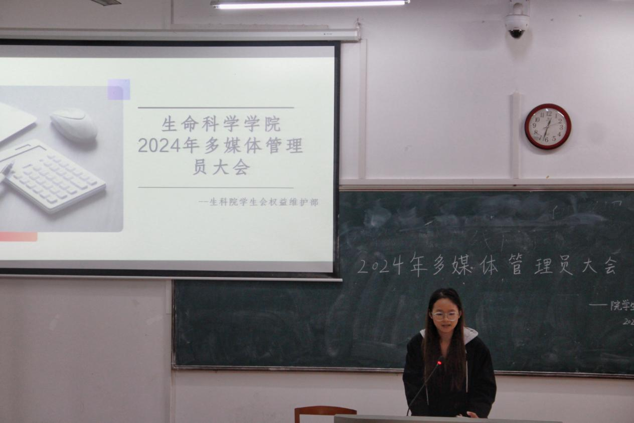(通讯员 谢志艳 章超凡)11月28日中午,天天精品视频免费观看学生会权益维护部于生科院4号楼103教室召开多媒体管理员培训会。生科院多媒体技术员陈成与院学生会权益部第二负责人谢碧瑶担任此次会议的主讲人。生科院2022级、2023级、2024级各班多媒体管理员参与此次培训会。