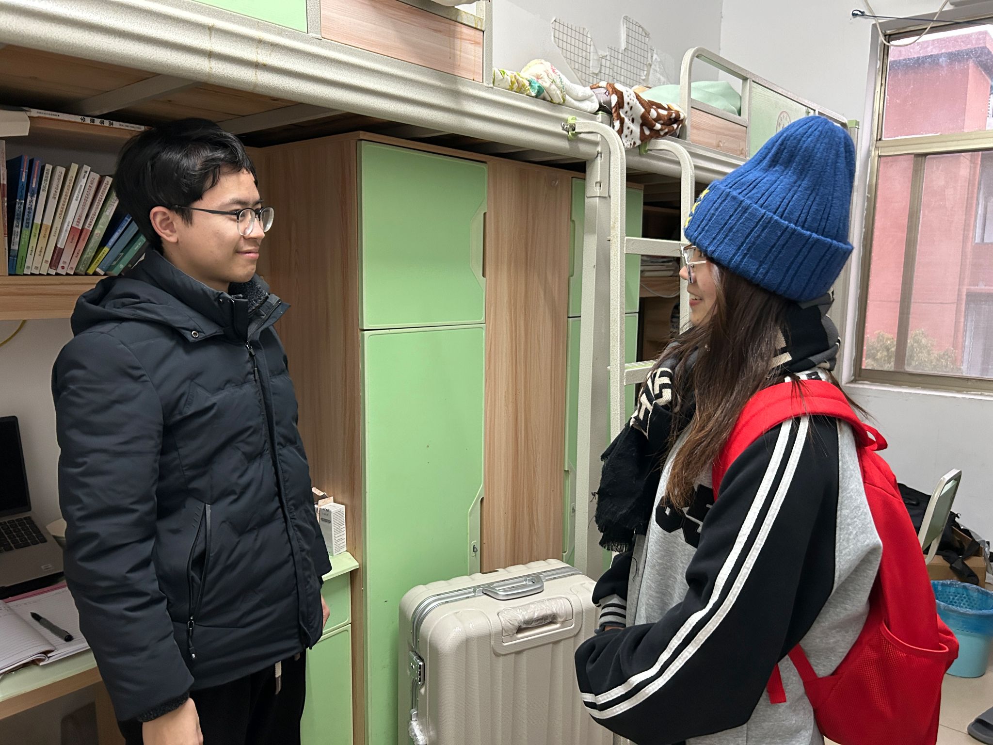 (通讯员 邱靖雯 邓芝涵)为鼓舞考研士气,助力学子备考,12月20日晚,天天精品视频免费观看开展2025届考研学子寝室走访工作。2021级辅导员刘迎彬深入学生寝室,为考研学子送去关怀与鼓励。