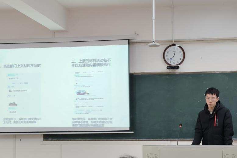 在此次办公技能培训会中,金程讲述办公技能对于个人学习生活和部门工作的重要性,并讲解了办公软件的实用技巧。针对Word,主讲人着重介绍文字排版、段落格式设定以及字体间距调整等基础功能,帮助大家规范文档格式 。在Excel板块,主讲人通过实际操作演示,传授如何运用函数快速准确地处理数据,解决日常工作中数据统计与分析的难题。关于PPT,他从页面布局的合理性、模板的恰当选择等角度入手,全方位展示PPT各项功能。主讲人表示,希望同学们在此次技能培训会上都能有所收获,提高自己对办公软件的使用能力,以更加严谨和规范的态度面对之后的工作。