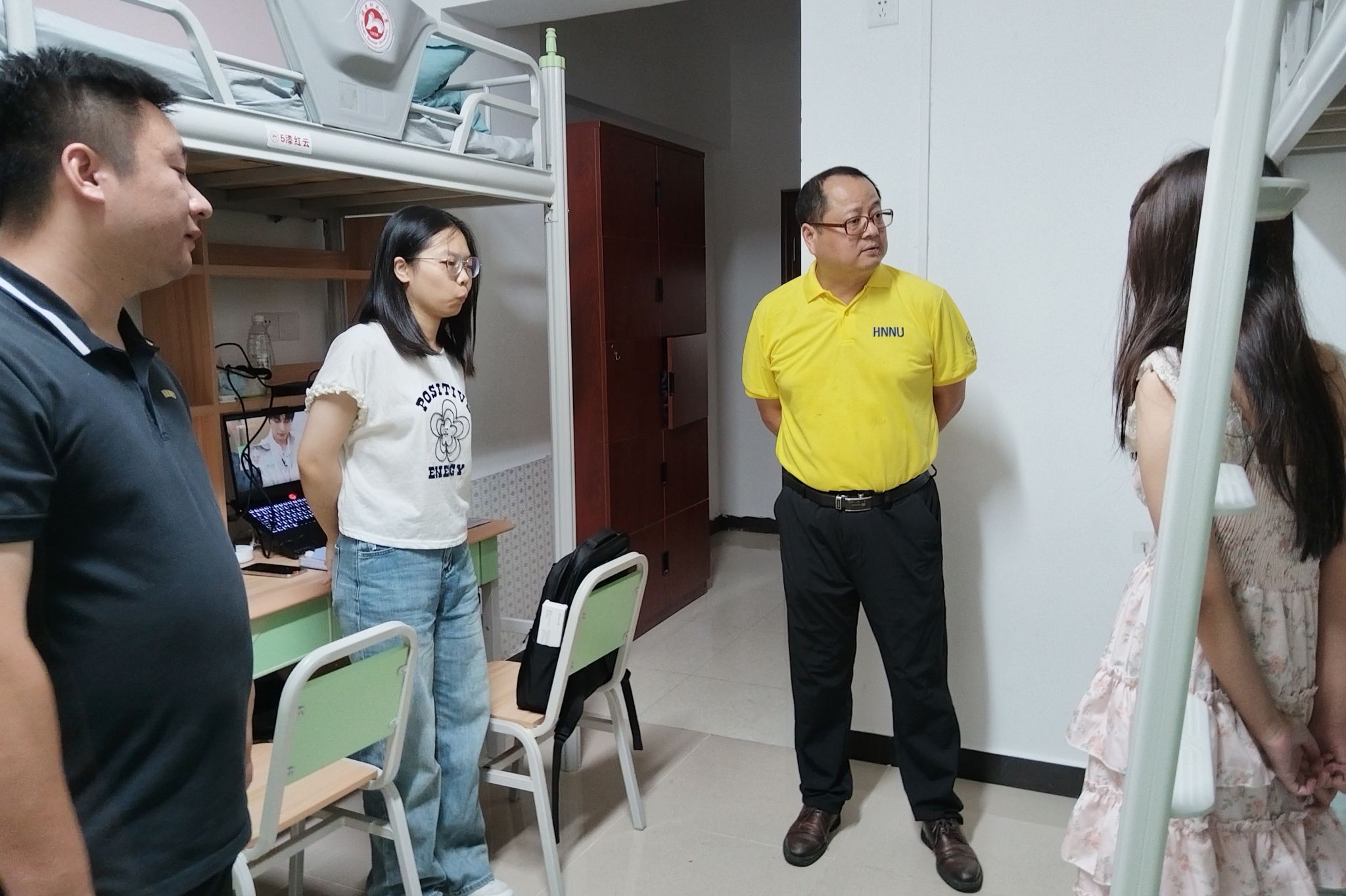 (通讯员 欧阳萱 田灿)9月14日上午,天天精品视频免费观看党委副书记彭赛丰、2022级辅导员周冲、2025级新生辅导员林鑫瑶前往新生寝室开展慰问走访工作。