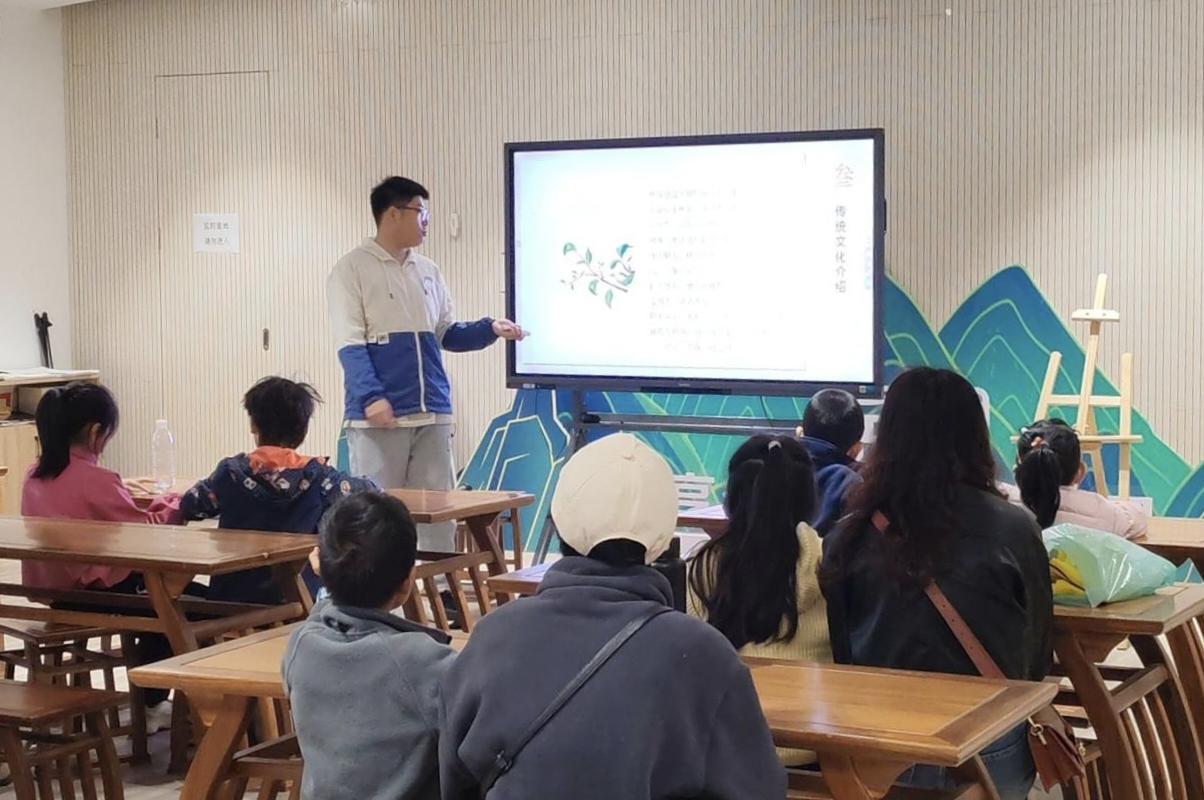 活动伊始,志愿者提前抵达活动场地,明确分工后引导小朋友有序完成签到并就座,同时维持现场秩序。主讲人以主题为“秋”的诗词开启话题,围绕活动主题展开讲解,向小朋友提问秋天和桂花相关问题,志愿者给积极作答的小朋友发放可爱贴纸作为奖励。在互动环节中,主讲人依次介绍桂花的种类,桂花美食,以及有关桂花的故事,并就桂花的成语与桂花的花式用法进行提问和讲解,阐述桂花实用价值与文化内涵。手工环节,主讲人播放扭扭棒桂花手工编制视频,志愿者们给予小朋友们编制指导与帮助,小朋友投入其中。活动结束后,志愿者组织展示扭扭棒桂花作品的小朋友们共同合影留念。