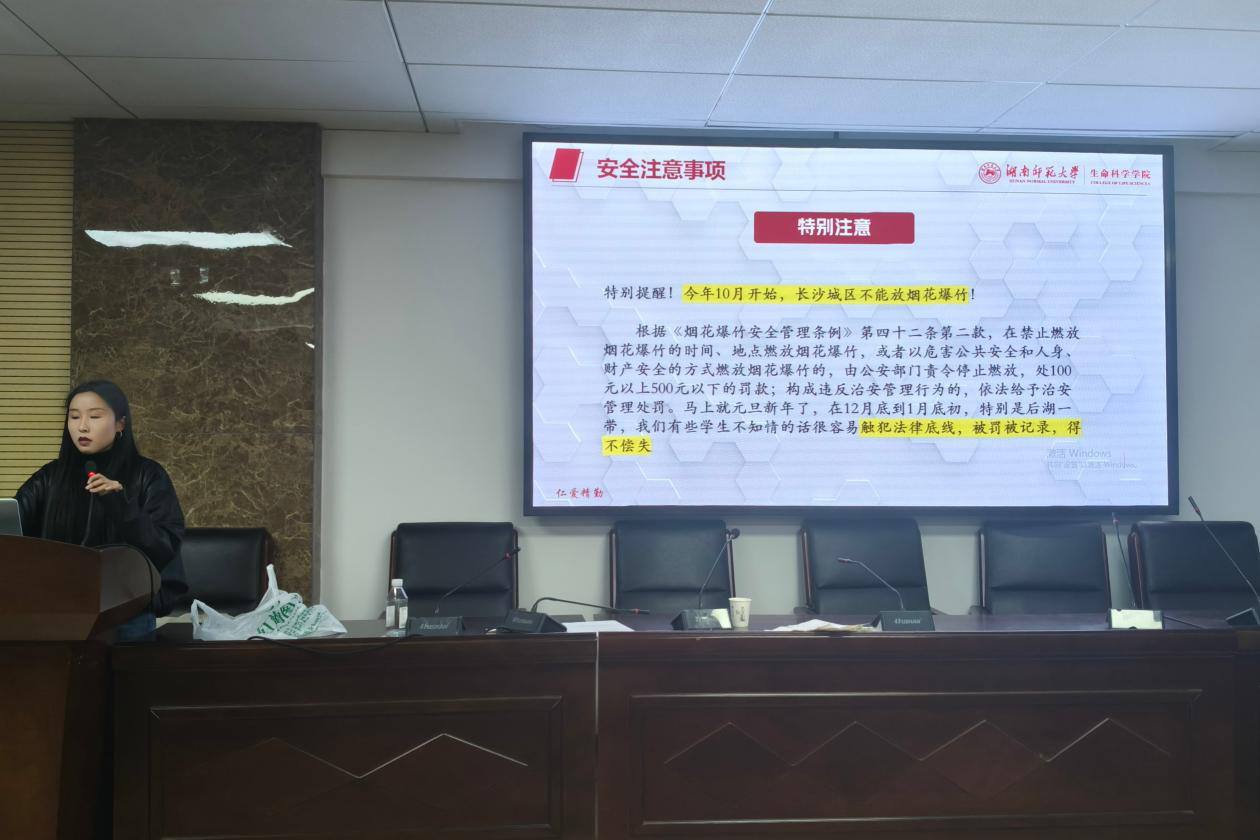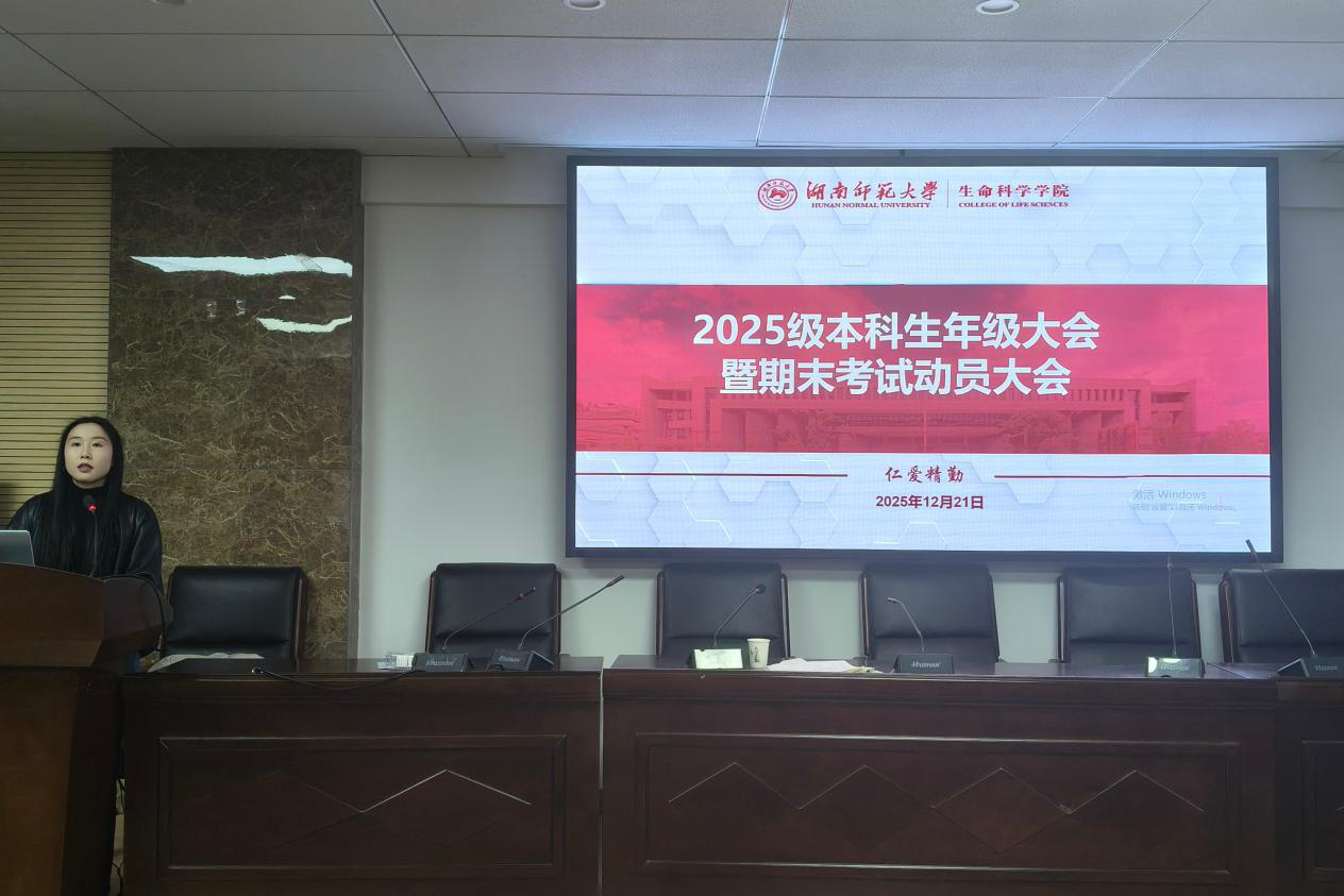 (通讯员 杨谨侨 张彤)12月21日晚,天天精品视频免费观看(以下简称“生科院”)于生科院3号楼B307学术报告厅召开2025级本科生年级大会暨期末考试动员大会。2025级辅导员林鑫瑶担任此次活动的主讲人。2025级全体本科生参加此次会议。