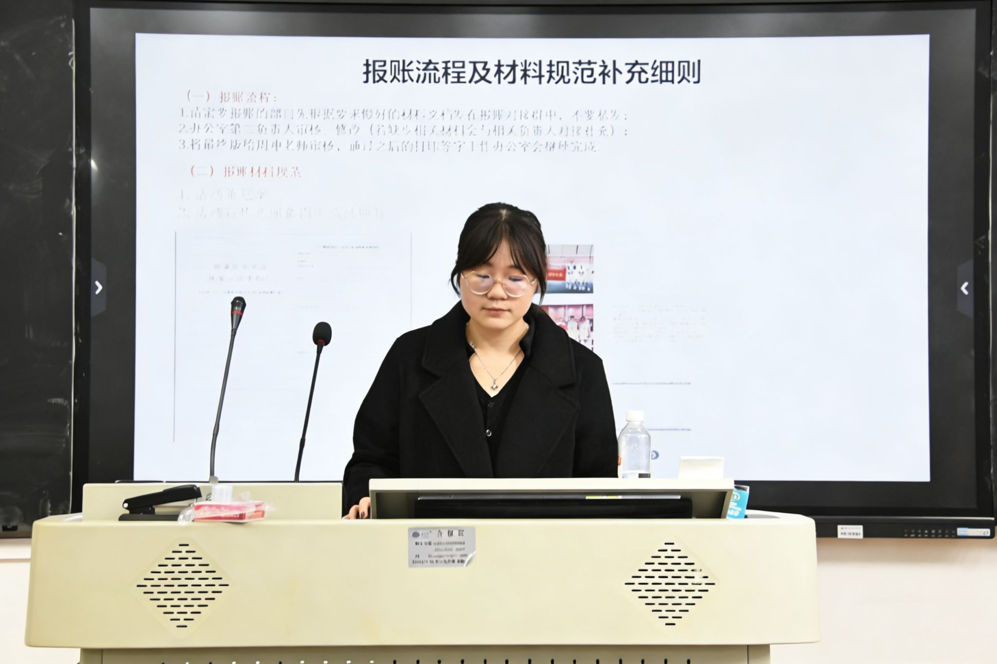 此次技能培训会,主讲人讲解报账流程、材料规范、报表格式三方面。在报账流程上,主讲人梳理部门从提交材料、办公室审核到老师终审的完整步骤。在材料规范上,主讲人明确各类材料的具体要求,涉及活动策划案、宣传新闻截图、采购发票与订单、奖品领取表及账单汇总表,要求其在格式、内容、签名上符合标准。在报表格式上,主讲人规范相关报表的填写、命名及附件的提交标准。同时,参会成员听取会议内容,研读会议文件,梳理并记录会议重点,领会会议目标任务与工作思路,把握会议核心内容。