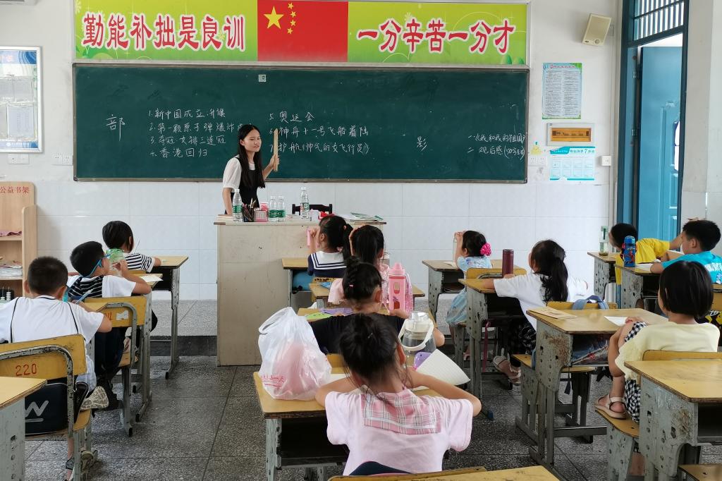(通讯员 梁嘉怡)7月14日上午,为引导青少年学生深刻感悟百年大党的责任和担当,传承红色基因,坚定理想信念,增强爱国主义情感,加强“勿忘历史,发奋图强”的思想意识,同时增强优秀国产电影对青年学生的影响力和引导力,天天精品视频免费观看团委赴岳阳市石牛寨镇暑期社会实践团在姜源学校举行红色观影活动,部分队员担任此次活动的主讲人。