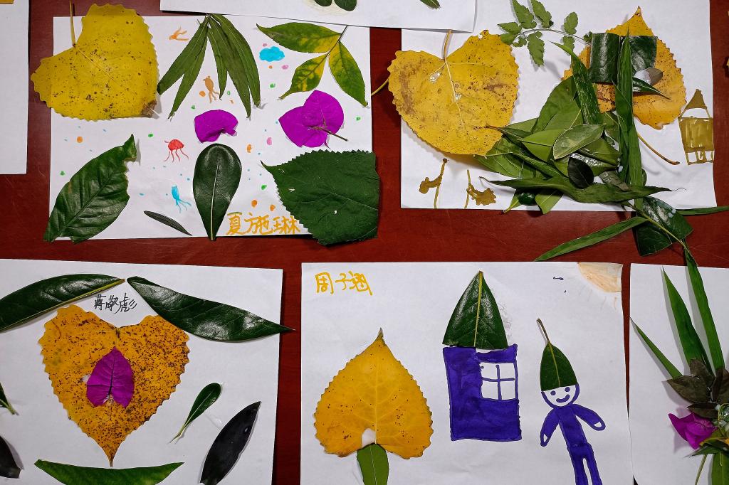 此次活动由讲解树叶外部结构和制作树叶贴画两部分组成。志愿者为孩子们分发树叶,做好活动准备工作。王雅洁通过讲解PPT和播放相关视频,向孩子们介绍叶片的种类及形态,并科普叶片的外部结构。在志愿者们的帮助下,孩子们互相合作,将普通的树叶变成一幅不同寻常的树叶粘贴画。
