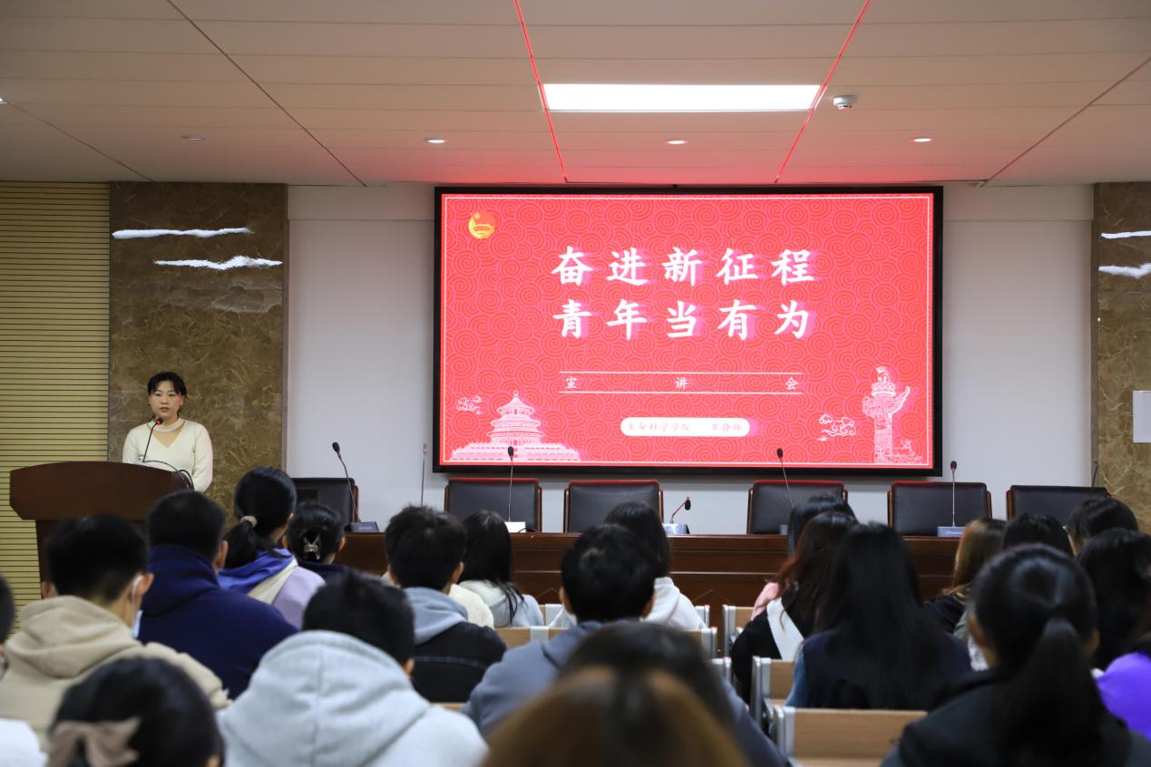 (通讯员 黄辰希 邓芝涵 冯鑫)11月15日中午,天天精品视频免费观看团委青年发展工作部于生科院三号楼B栋307学术报告厅举办“登攀团校——奋进新征程,青年当有为”理论培训活动。院团委负责人罗静伟担任此次活动的主讲人,院团委青发部干事熊逸冰、宣传部干事甘俊懿担任主持人。