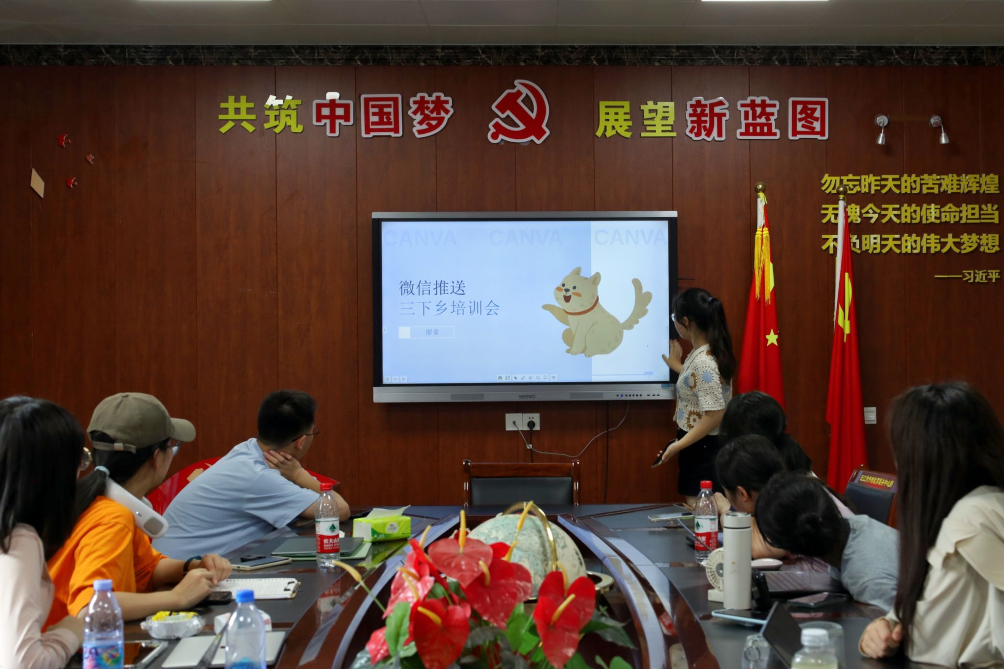此次会议分为新闻撰写培训及微信推送培训两个部分。李宇轩以2023年暑期三下乡投稿须知文件要求为基础,侧重于讲解标题、图片、正文的要求,强调撰写新闻用词应妥当、格式需规范。她提醒大家新闻具有时效性、真实性以及准确性,并表示希望后续的新闻撰写更加标准。廖童从微推内容要求、审核要求以及时间观念三方面进行详细讲解,她希望团队成员丰富微推内容,在规定时间内完成微推的撰写、审核、投送程序。