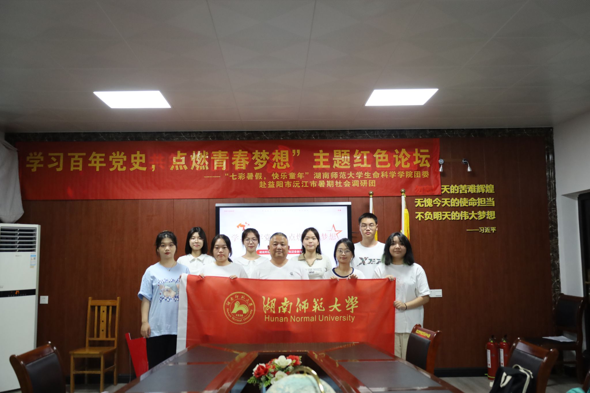 (通讯员 甘俊懿 李宇轩)7月14号上午,湖南师范大学天天精品视频免费观看团委赴益阳市沅江市暑期社会调研团调研组于莲子塘小学党支部办公室举办“学习百年党史,点燃青春梦想”主题红色论坛活动。莲子塘小学教师代表高丹担任主讲人,生科院团委暑期调研团队长张晰然担任发言人,队员甘俊懿担任主持人。