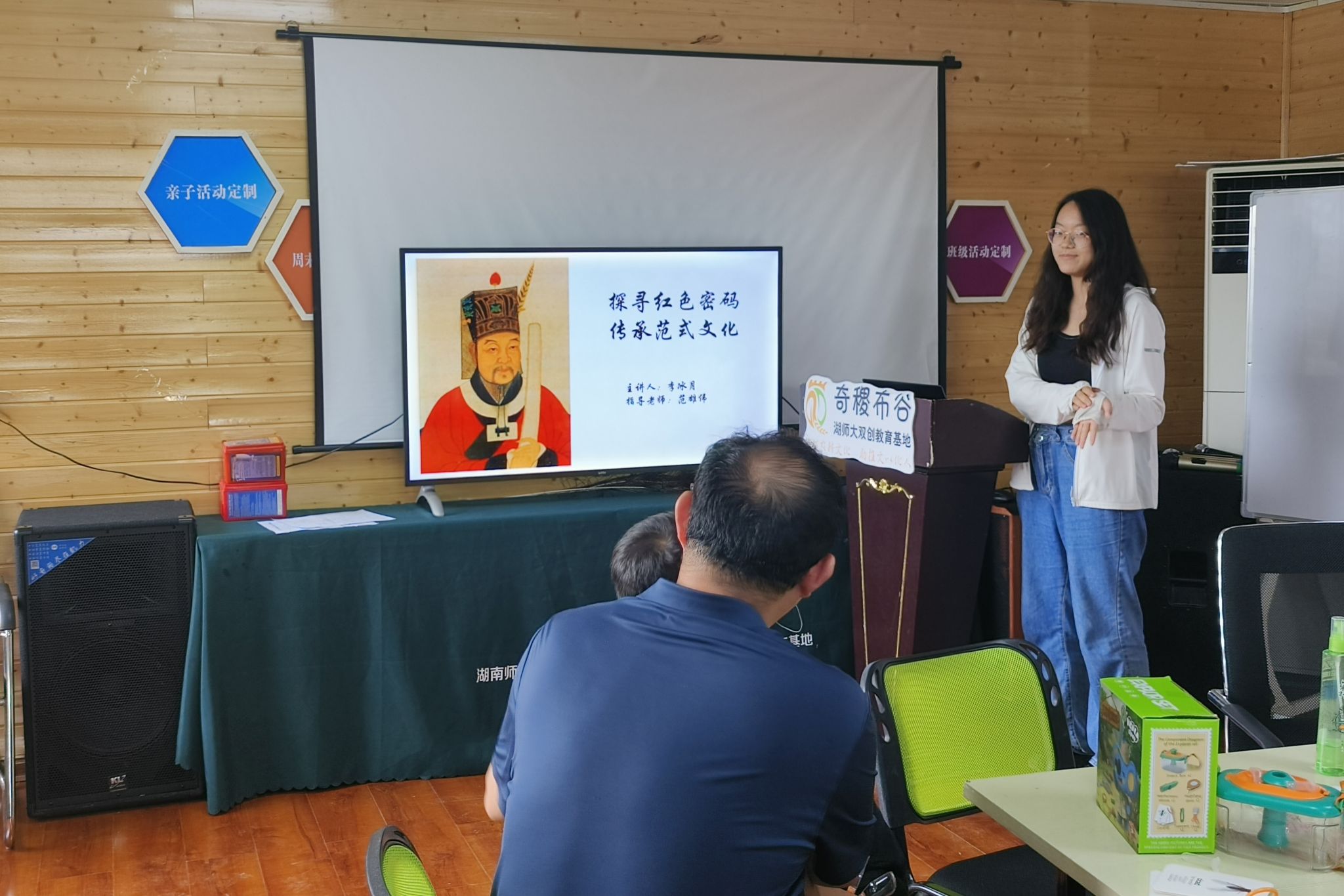 (通讯员 黄少彬 李锦怡 沈莹)7月24日下午,“奇趣科普,乡约盛夏”——湖南师范大学天天精品视频免费观看赴白箬铺镇暑期实践调研团在奇稷布谷园区开展系列文化宣讲会。宣讲会由“探寻红色密码 传承范氏文化”和“推广普通话 写好规范字”宣讲会组成。院副教授范雄伟参加此次宣讲会。2021级生科一班李冰月、2022级生科三班黄少彬担任此次活动主持人。
