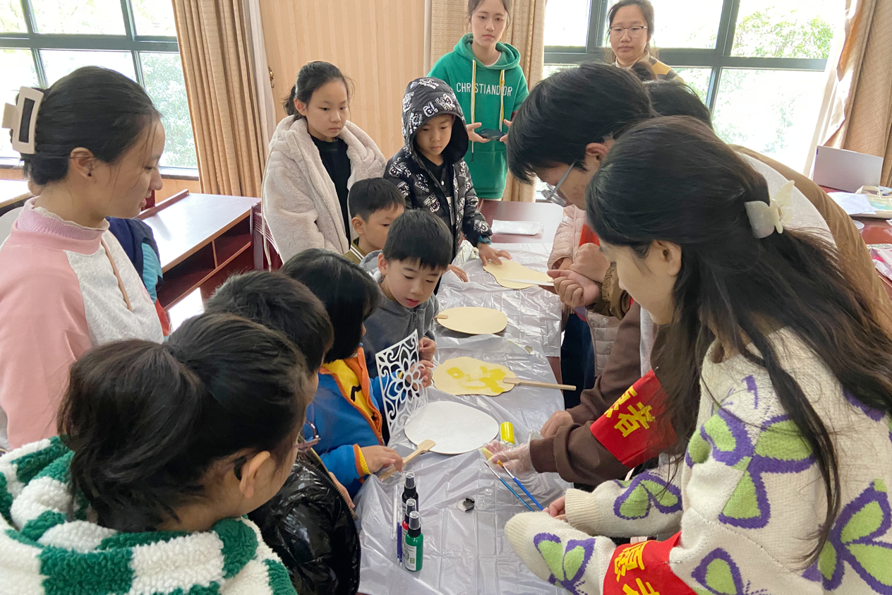 志愿者帮助小朋友制作手工