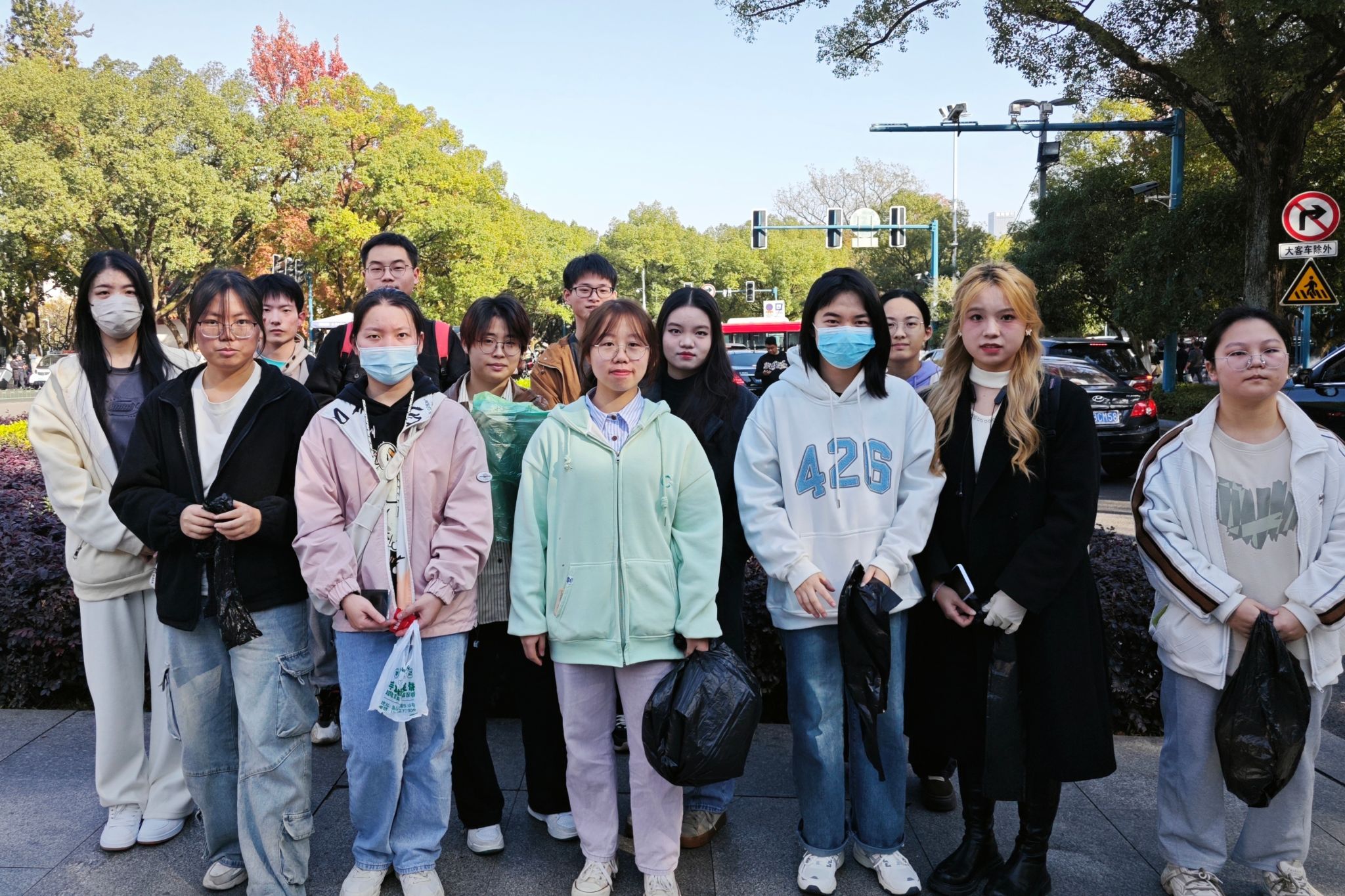 生技七班志愿者携带垃圾夹、垃圾袋、手套等工具到达岳麓山下集合。负责人钟可可进行志愿工作安排,将志愿者分为三人一组,并提醒志愿者清扫时注意安全。志愿者按照提前规划的行动路线,沿登高路向岳麓山南门前行,捡拾街边游客留下的垃圾。志愿者们避开游客和车辆,清理地面的大块塑料、食物和烟头等垃圾。活动结束后,志愿者将垃圾进行集中处理,负责人清点人数后返回学校。
