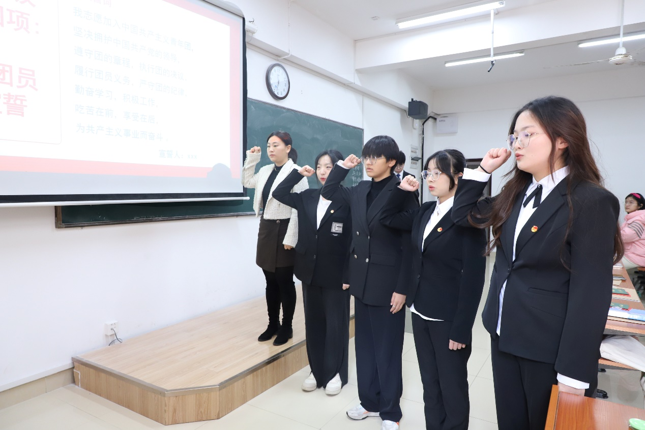 到场人员全体起立奏唱国歌。主持人刘涵博介绍中国共产主义青年团并宣读生科院2023年新发展团员名单,罗静伟为新发展团员颁发团员证和团徽,并组织新发展团员进行入团宣誓。入团介绍人代表张晰然宣读《团章》中有关团员的义务及权利的条款。