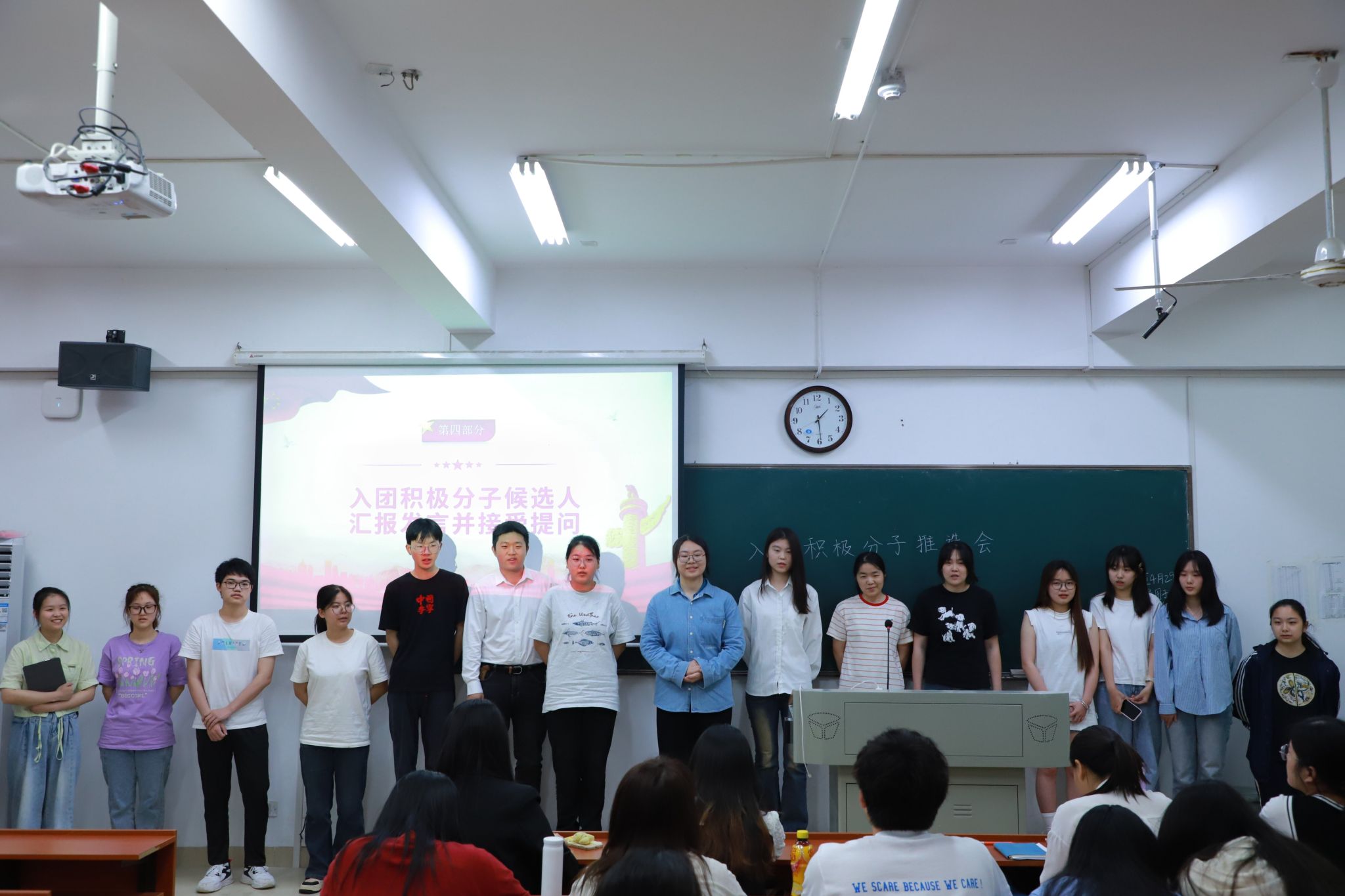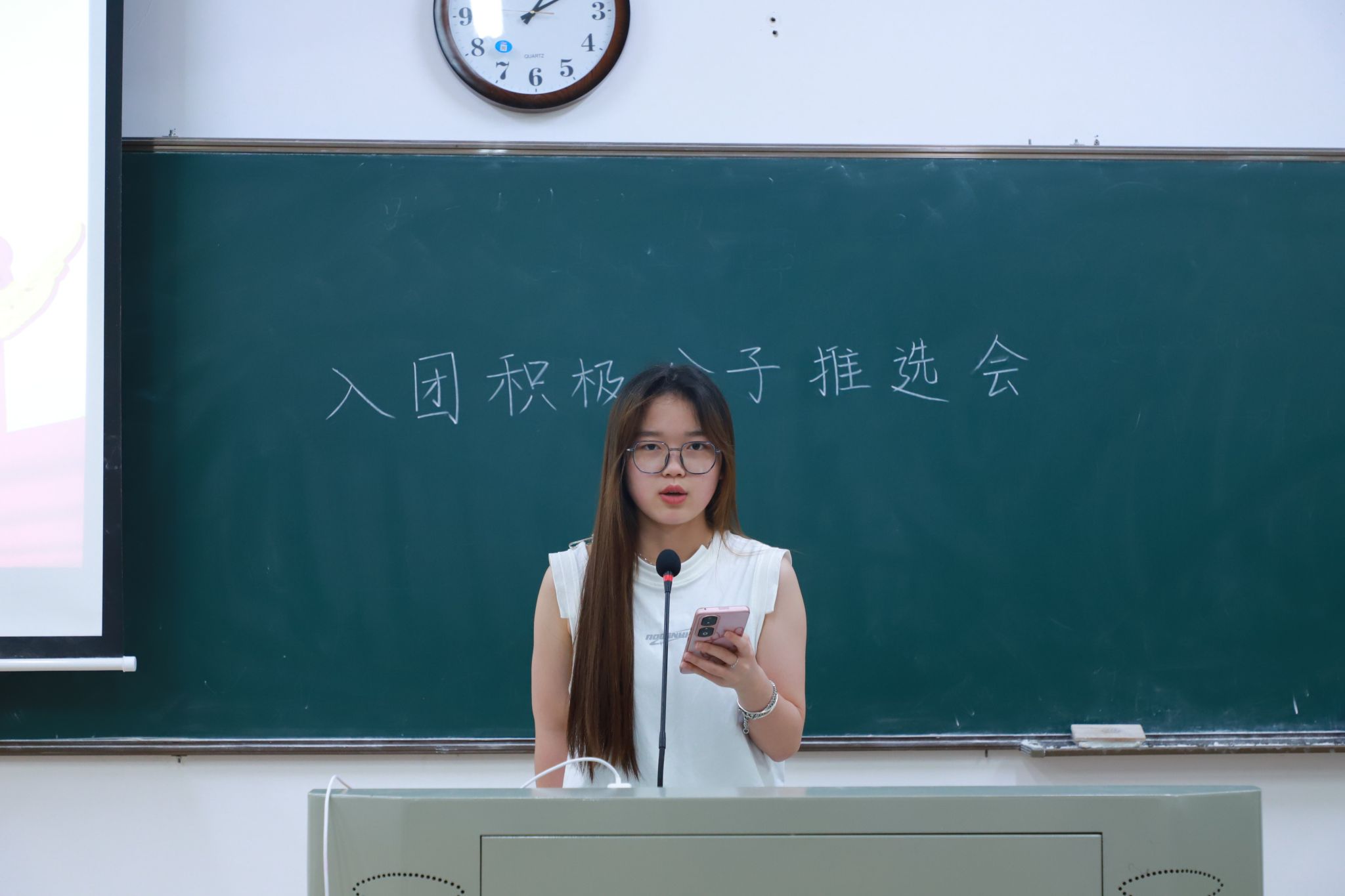 此次会议分为入团流程介绍、推选方式与候选人名单宣读、入团积极分子候选人汇报发言与答问、投票推选以及院团委书记发言五个环节。主持人宣读推选程序与标准,说明此次会议遵守公平、公正、公开原则,采取现场投票并在会后统计票数公示名单的方式推选新发展团员。候选人依次上台发言,分享自己在学习中的感悟所得和生活中服务社会的经历,向团组织表达自身想成为一名共青团员的渴望,并承诺他们将肩负起新的使命,继续在学习和服务中成长,为团组织的发展贡献自己的力量。同时,团委委员以候选人对团的认知情况和服务社会的热情作为衡量标准,向候选人提出“如何看待中国共青团这个组织”、“团员的职责与使命是什么”、“你打算如何服务社会”等问题。候选人结合自身理解,表达自己对团员的认识与加入团组织的意义,展现自身对服务社会的热情。随后,罗静伟对各入团积极分子候选人向团组织靠拢表达肯定与欢迎,并鼓励同学们积极投入到学习和团工作中,不断提升自己的个人能力和综合素质。她说明入团积极分子在学校和社会中的作用与责任,鼓励大家要以实际行动践行社会主义核心价值观,努力成为德智体美劳全面发展的社会主义建设者和接班人。