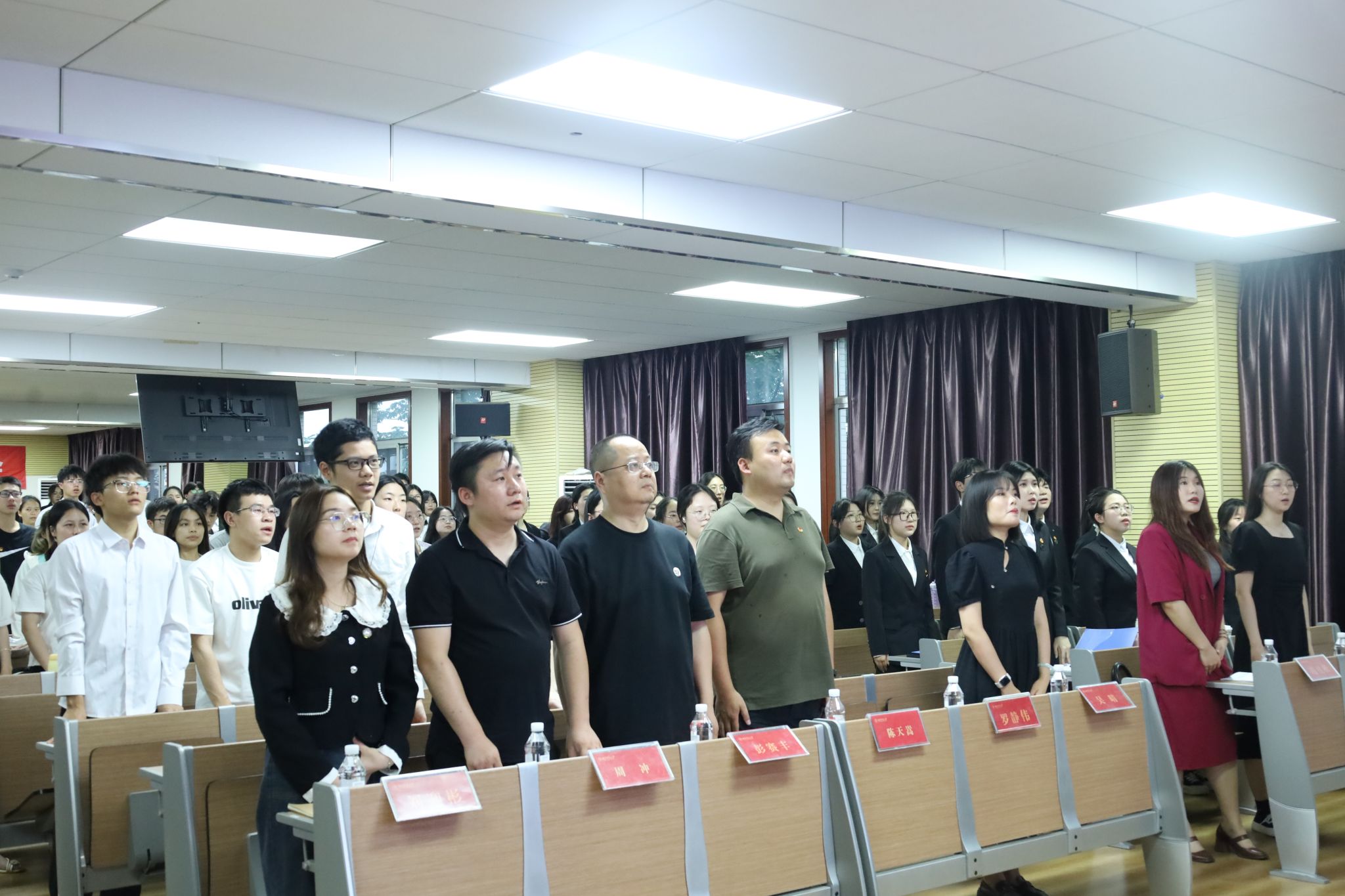 周冲、刘迎彬、吴晴、罗静伟分别为院团学组织正式委员颁发聘书并合影。罗静伟致闭幕词,她赞许学生干部们的工作态度及取得的成绩,并祝愿新一年的学生工作能取得更多成果。