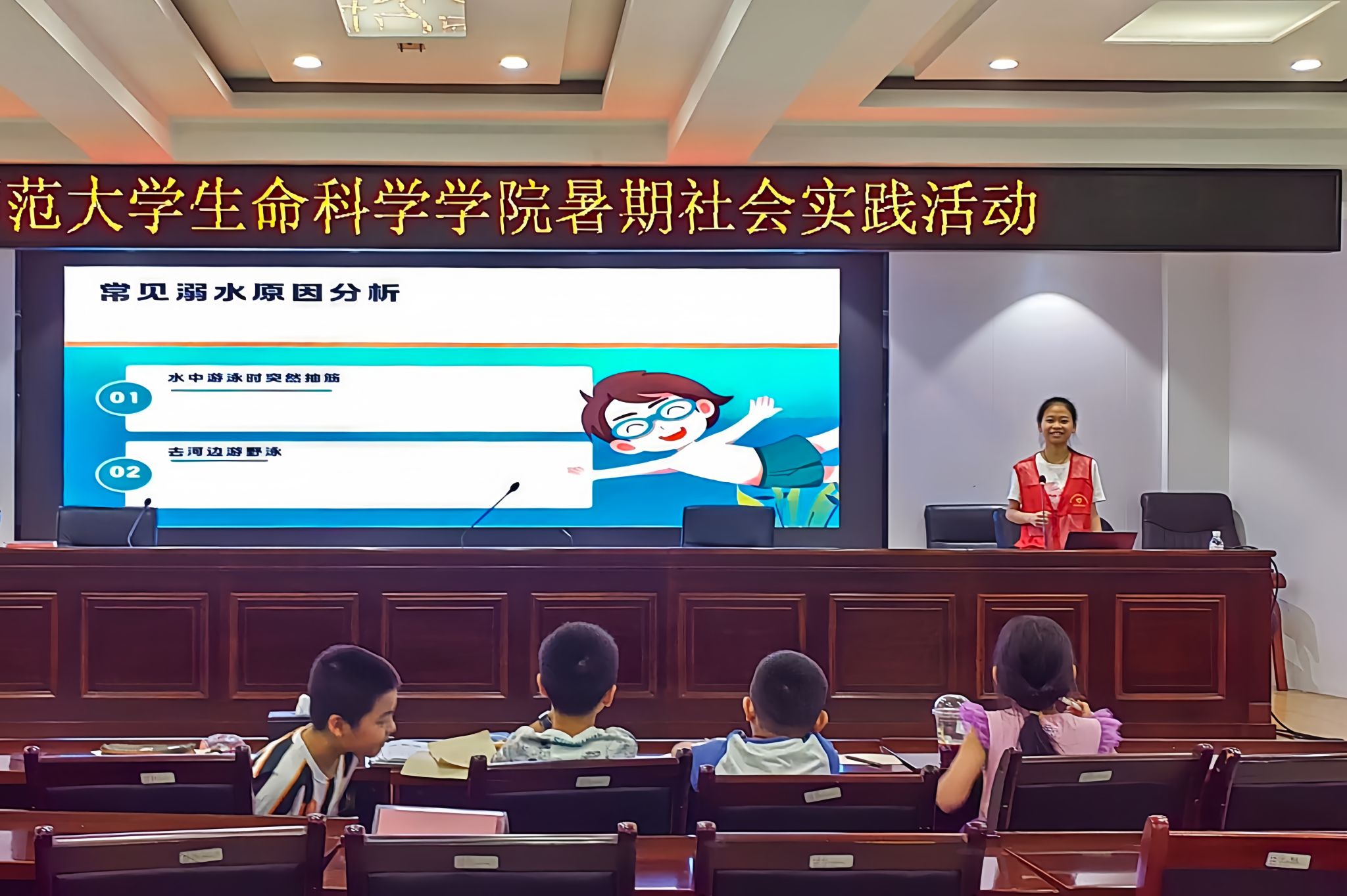 (通讯员 李嘉昕 潘田欣)7月13日,天天精品视频免费观看“湘畔守望”——赴桔子洲街道暑期实践团于桔子洲街道办事处开展“防患未然 安全‘童’行”主题教育课程。生科院2022级实践队队员潘田欣、顾鑫悦担任此次课程的主讲人。