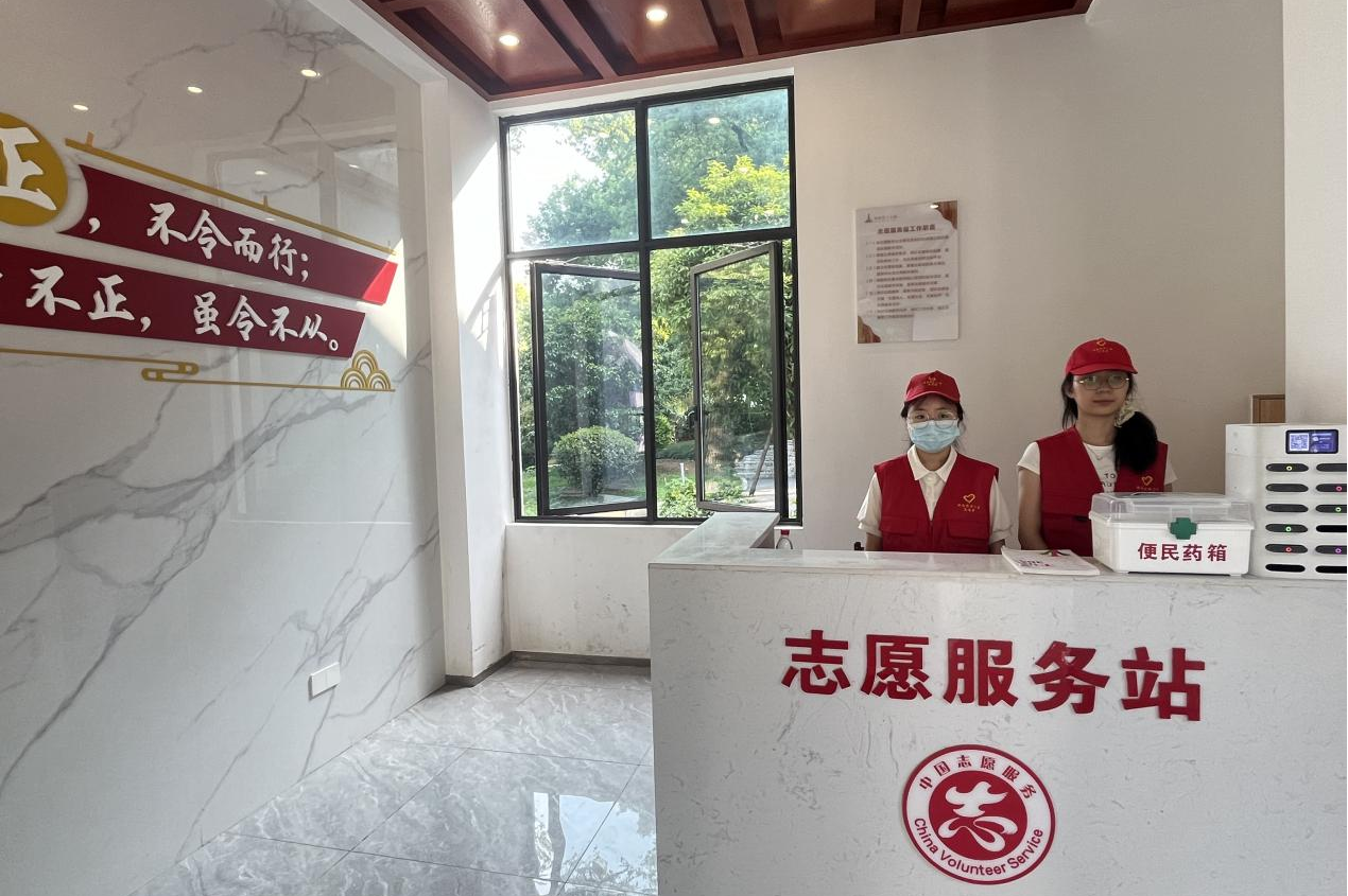 志愿者为游客指引方向