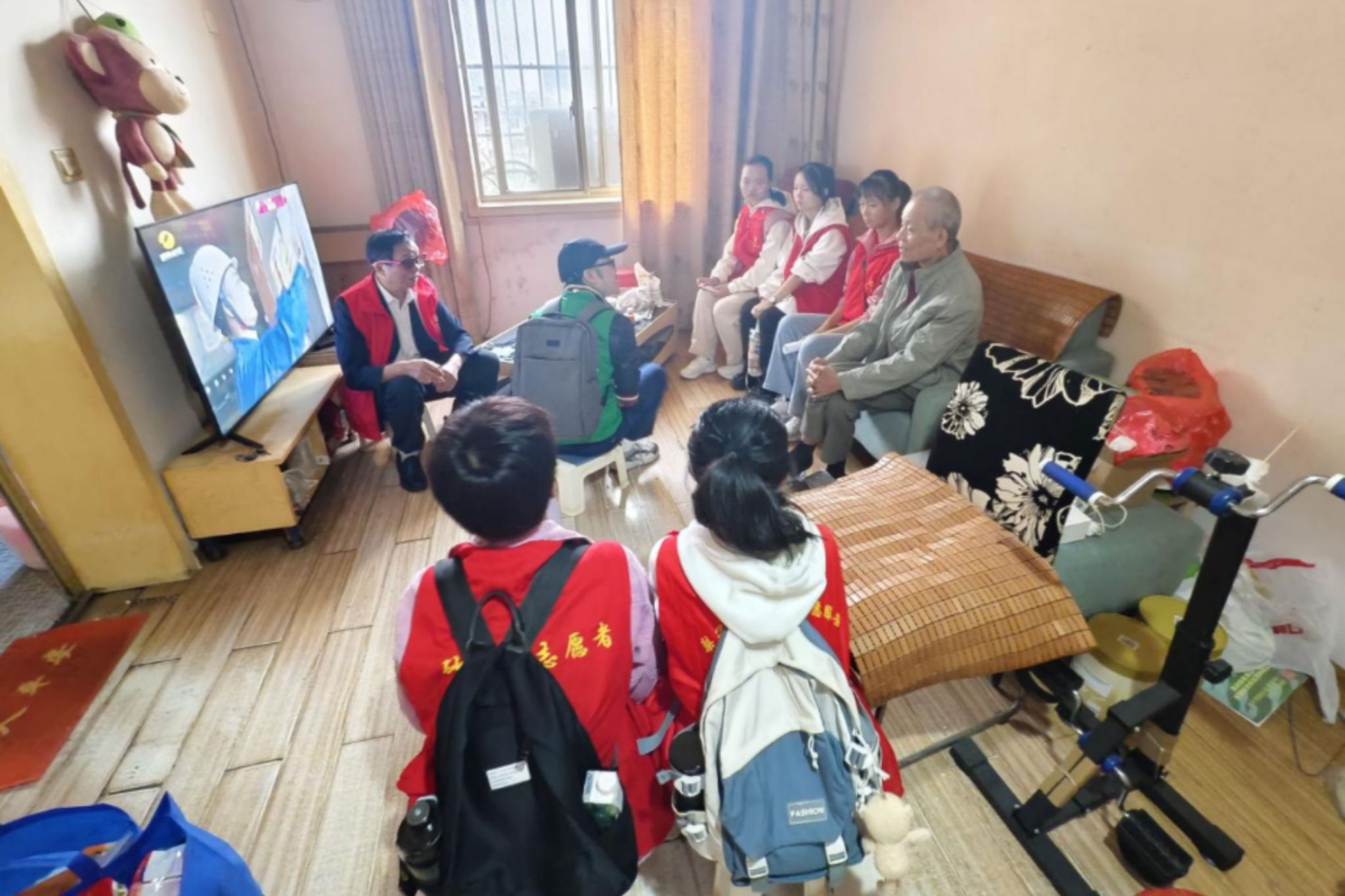 社工和志愿者对老人进行走访