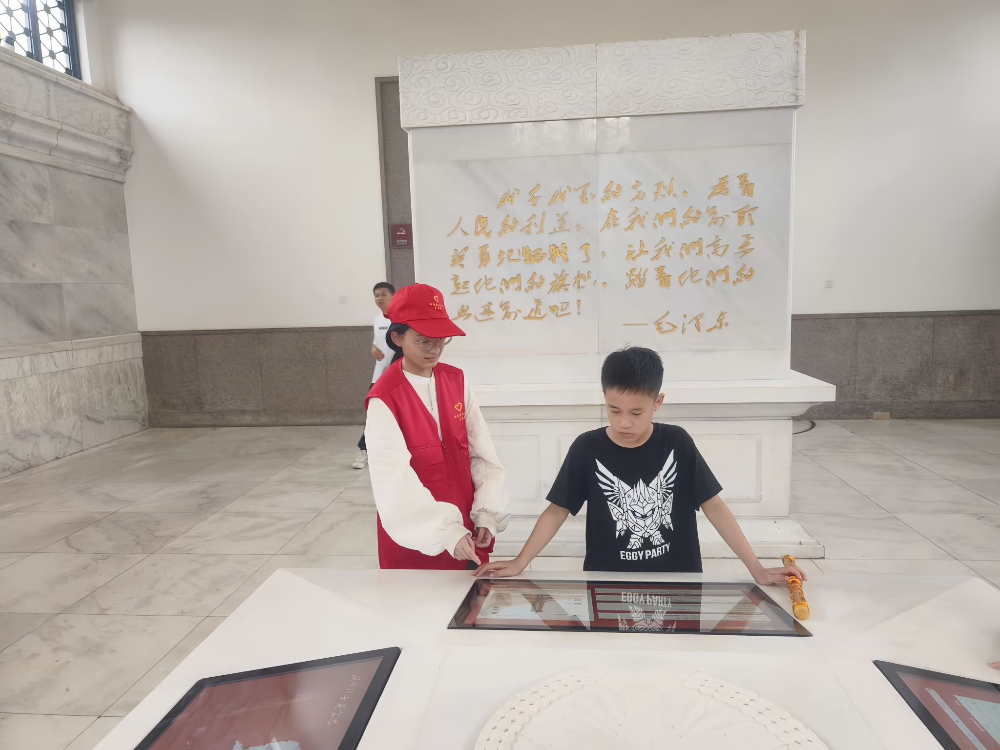 志愿者引导游客参观烈士博物馆