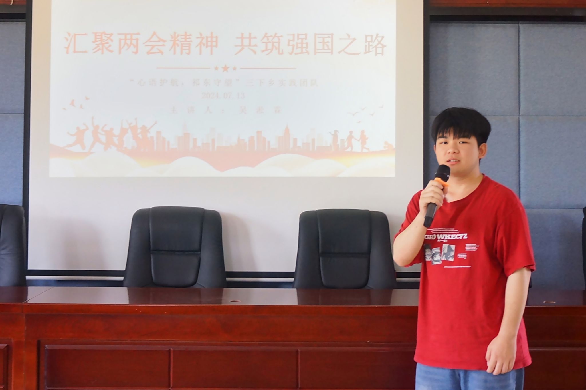 主讲人结合两会报告内容和祁东当地的实际情况,分别从政策、经济、生态、和教育四个方对如何在三下乡实践行动中贯彻两会精神这一切实问题进行具体阐释。他通过解读两会的重要决策和精神实质,聚焦中国取得的新成就、发展面临的新挑战,分析了中国发展形势对祁东发展的影响。同时,主讲人就青年应该如何在新时代背景下推动乡村振兴、实现人生价值,提出“树理想、勇担当,勤奋斗、铸辉煌,积极投身社会主义建设事业”等建议。