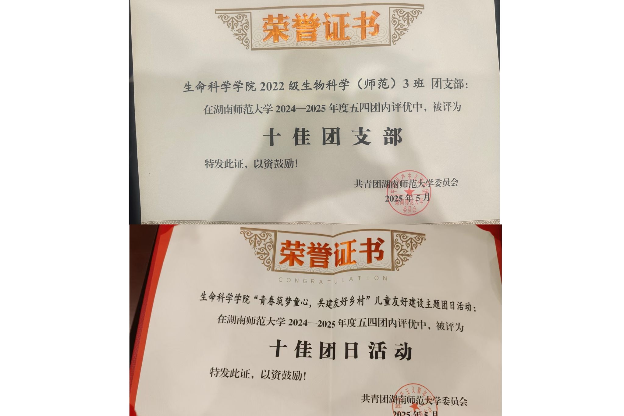 十佳团支部 :2022 级生物科学三班团支部