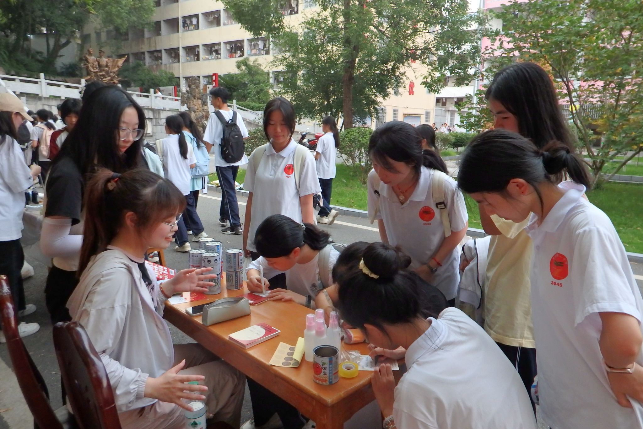 活动现场,主持人和助教向学生分发"梦想卡",引导大家填写个人梦想。完成书写后,学生凭卡片兑换盲盒盆栽。随后,主持人讲解盆栽种植步骤与养护要点,包括土壤选择、移栽技巧、浇水频率、光照需求和常见问题处理,并通过实物演示确保学生理解操作要点。在主持人和助教的指导下,学生们分别完成从填土到浇水的完整种植过程。主持人结合实践过程提出,植物生长需要持续照料,而梦想的实现同样需要时间与坚持。同时,她启发大家将植物的播种、生长过程,与梦想的萌芽、实现联系起来,体会其中的共通之处。